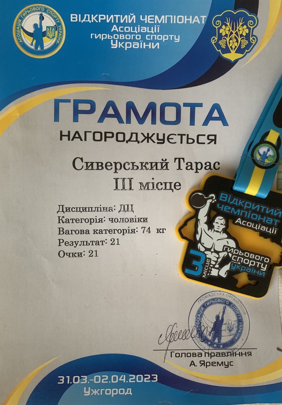 Сиверський Тарас успішно займається гірьовим спортом. У березні та червні 2023 року Тарас здобув 3 місце на Чемпіонаті України та Відкритому чемпіонаті Асоціації гірьового спорту України.