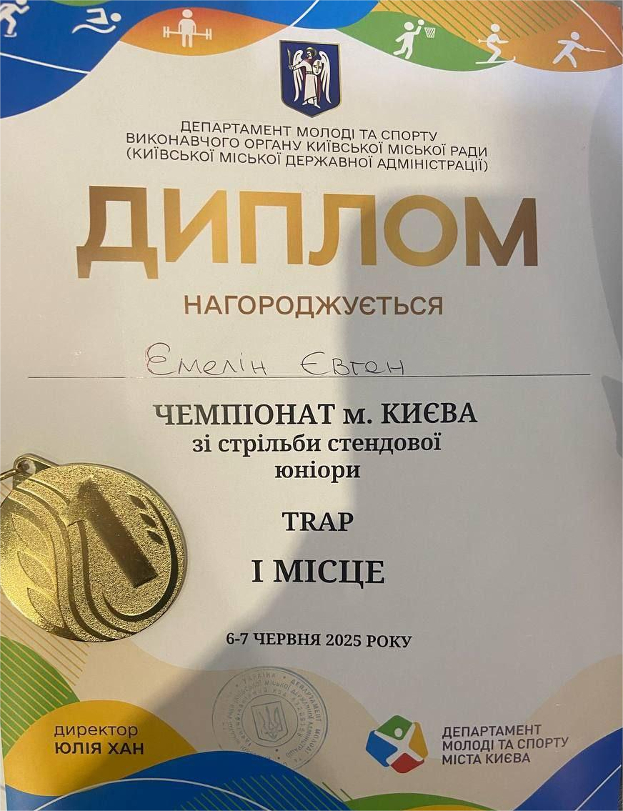 Міжрегіональна Академія управління персоналом щиро вітає студента першого курсу спеціальності «Філологія» Навчально-наукового інституту психології та соціальних наук - Ємеліна Євгена із блискучою перемогою на Чемпіонаті м. Києва зі стрільби стендової серед юніорів у дисципліні Trap!