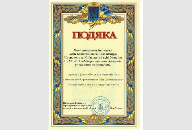 Студенти Хмельницького інституту МАУП отримали подяку від Головного територіального управління юстиції у Хмельницькій області.