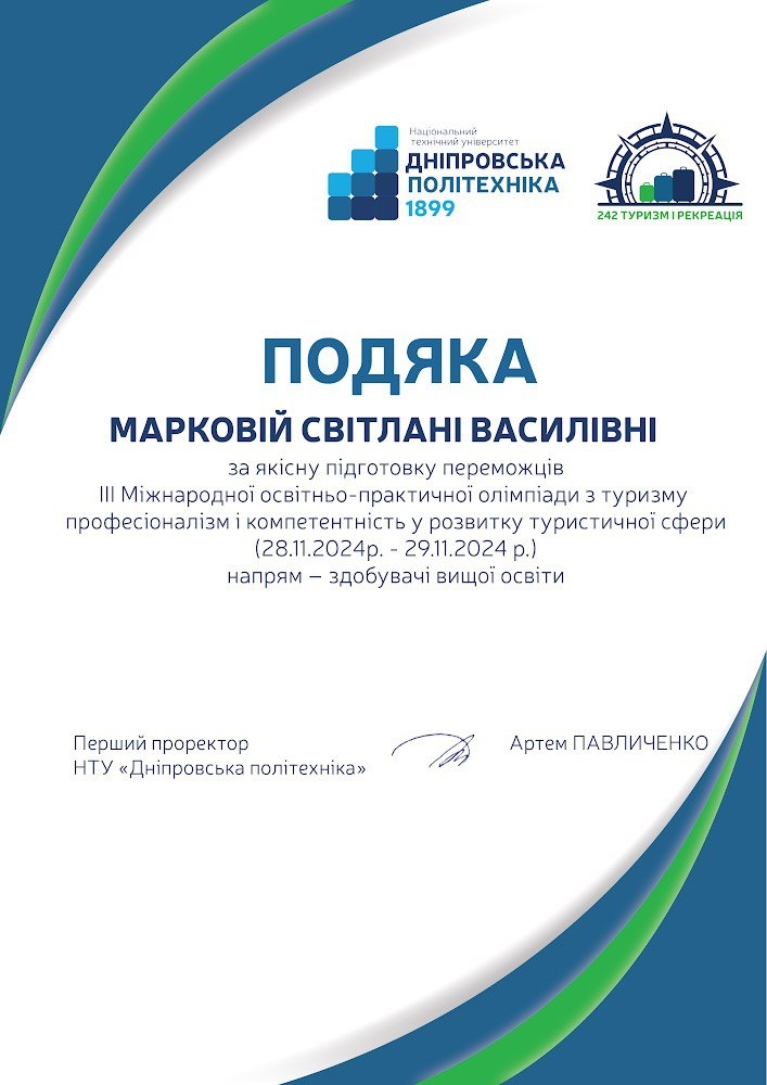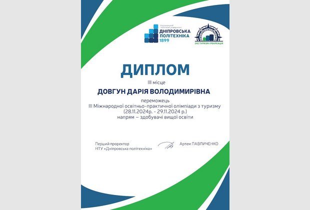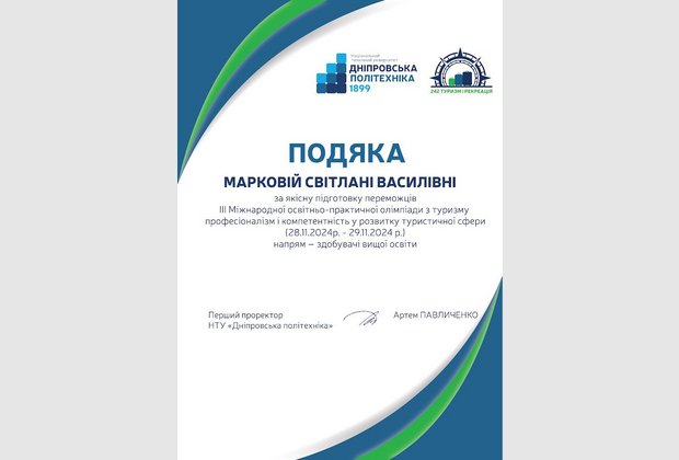 У грудні 2024 року підведено підсумки ІІІ Міжнародної освітньо-практичної олімпіади з туризму, що проходила на базі Національного технічного університету «Дніпровська політехніка».
