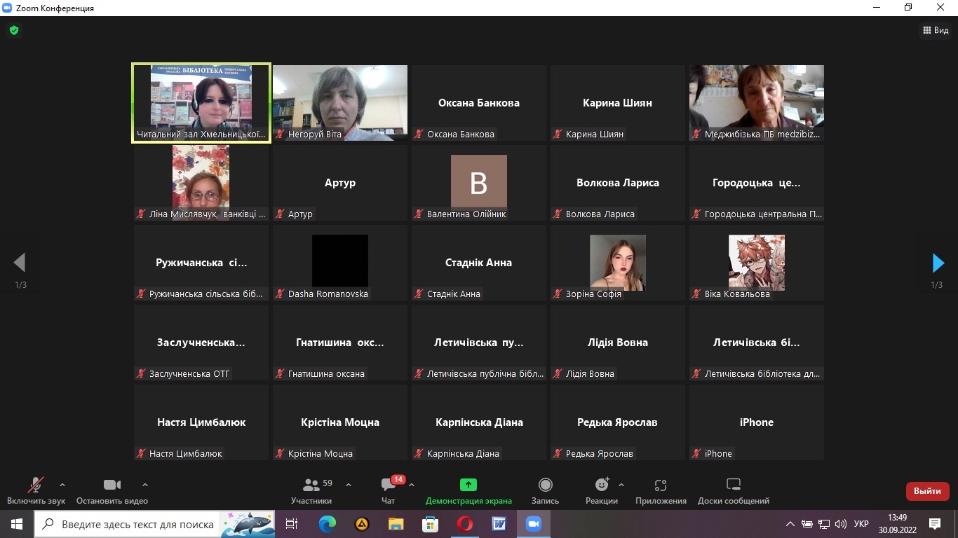 У рамках XIV Форуму бібліотекарів Хмельниччини «Бібліотека – спільнодія для твоєї мрії» на платформі Zoom відбулася бібліотечна гутірка «Будь у тренді! Читай і зростай!».