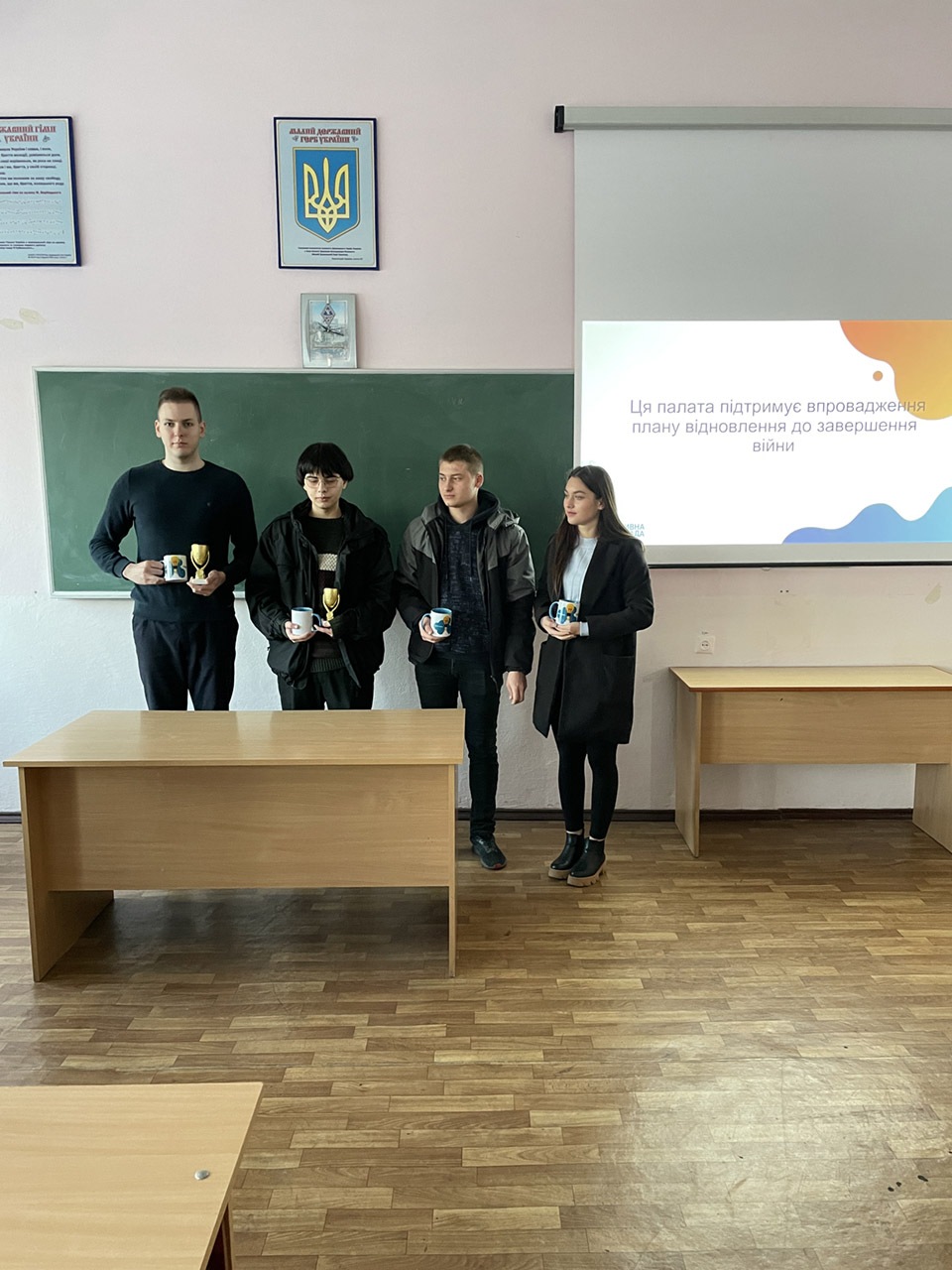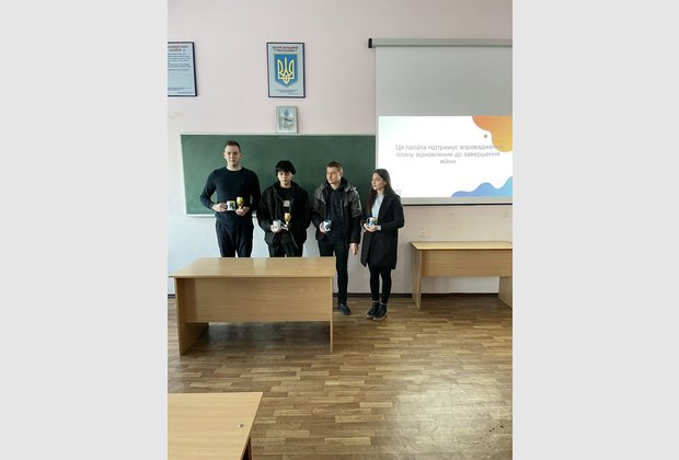 Для дебатів студенти обрали тему про впровадження плану відновлення України – чи варто починати реалізовувати заходи плану під час війни, чи, можливо, слід зачекати до завершення бойових дій.