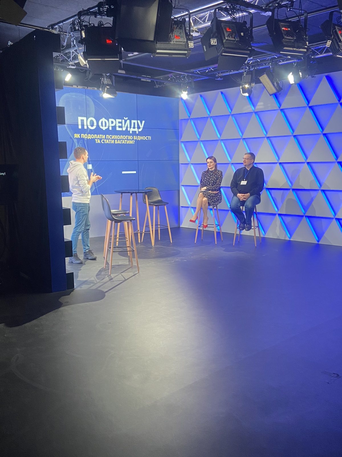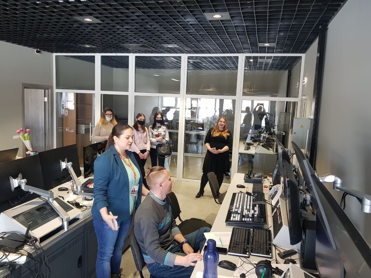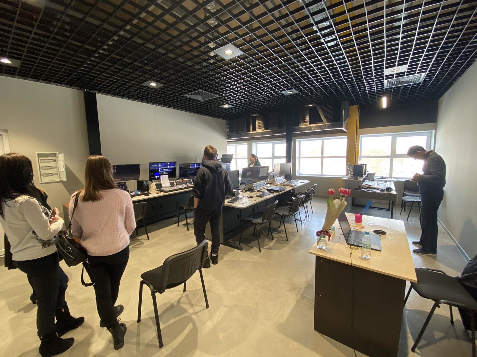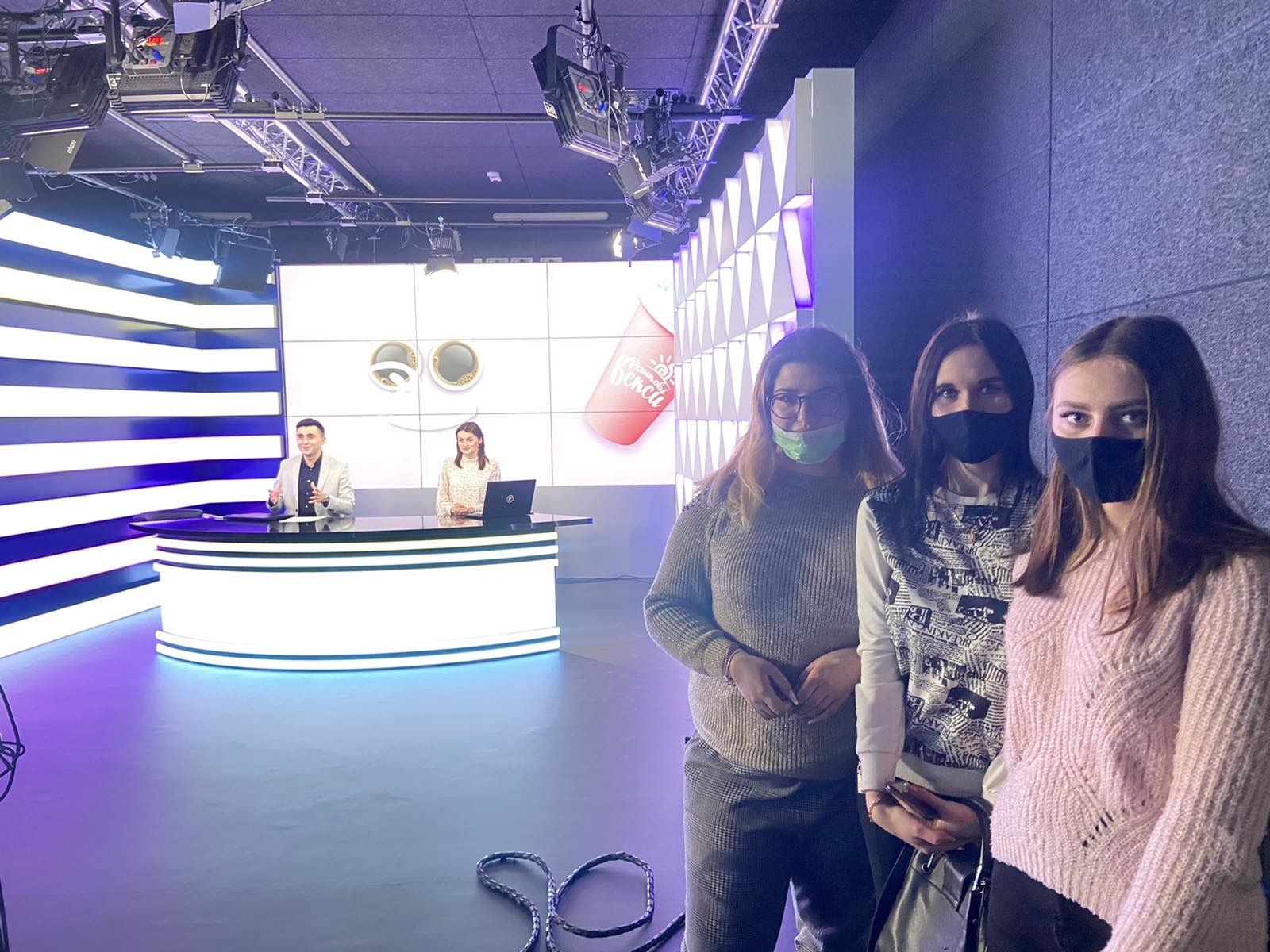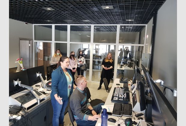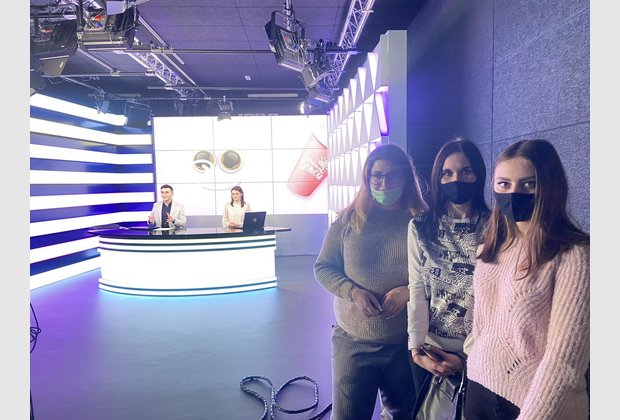 Журналістка Богдана Кокайлович розповіла про роботу ведучих, операторів, реадакторів і всієї команди, яка працює над новинами, програмами і шоу. Студенти спробували читати новини з суфльору та побували на студії запису, також побачили як записується ранкова програма.