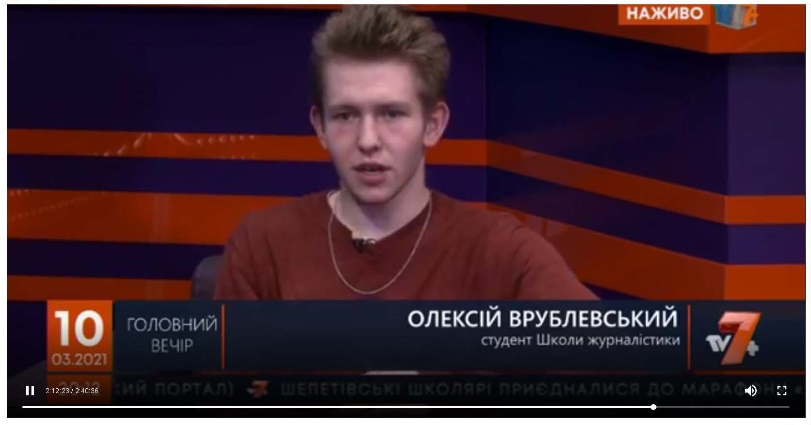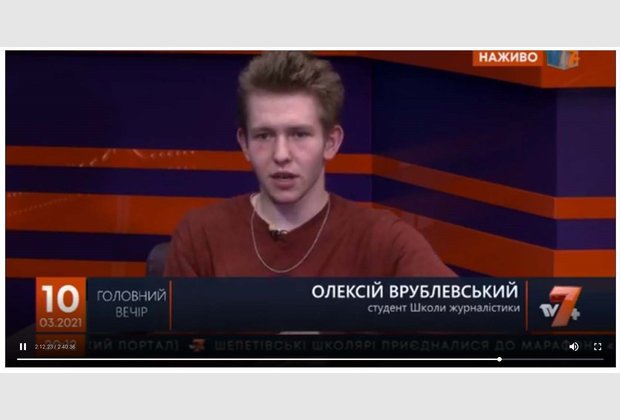 Студент першого курсу Олексій Врублевський став учасником телепередачі «Головний вечір», що вийшла у прямому ефірі 10 березня на телеканалі «ТВ 7+».