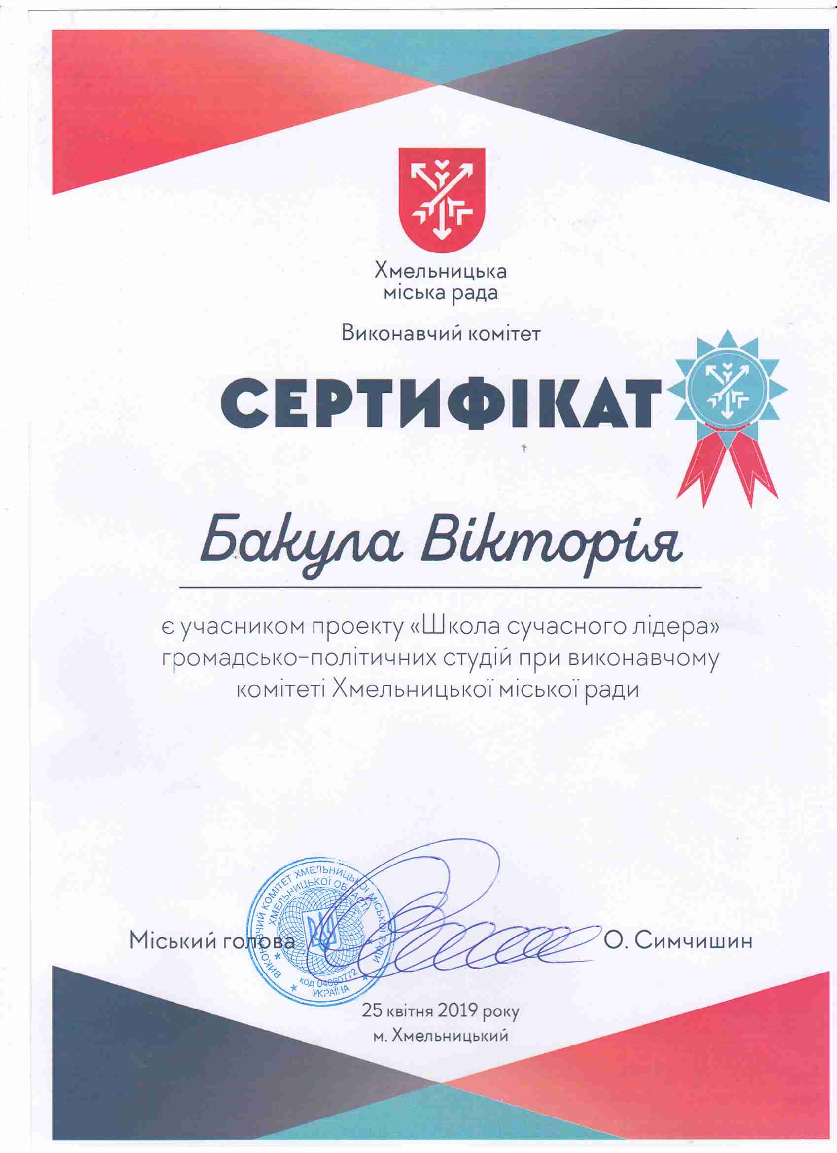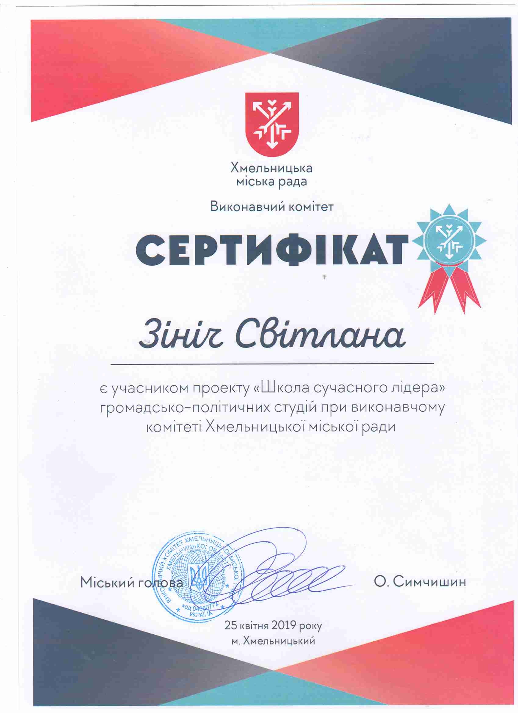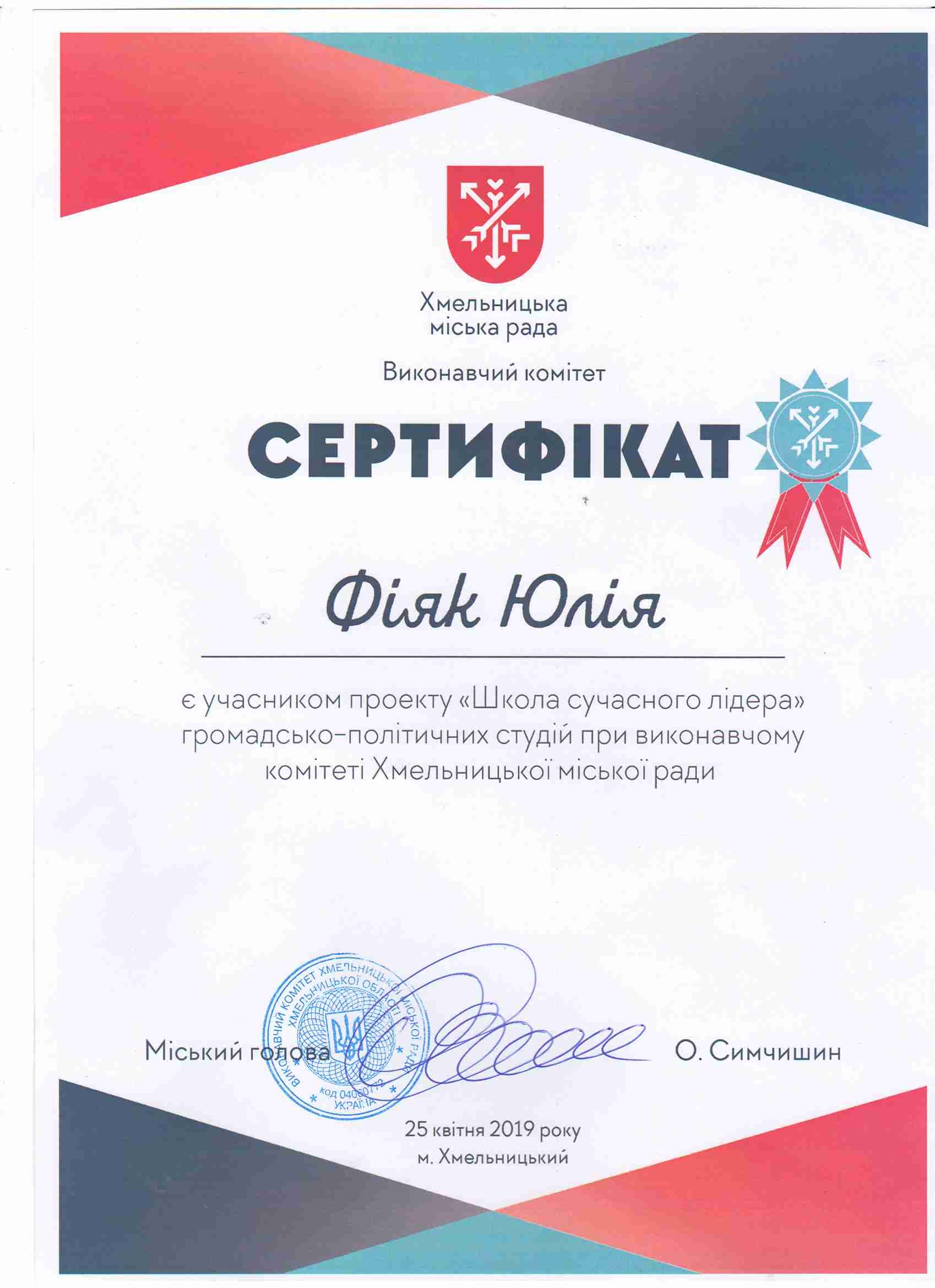 26 квітня у приміщенні «Молодіжного центру» завершилися громадсько-політичні студії «Школа сучасного лідера». Із завершенням навчальної програми присутніх привітала керівник справами виконавчого комітету Хмельницької міської ради Юлія Сабій.