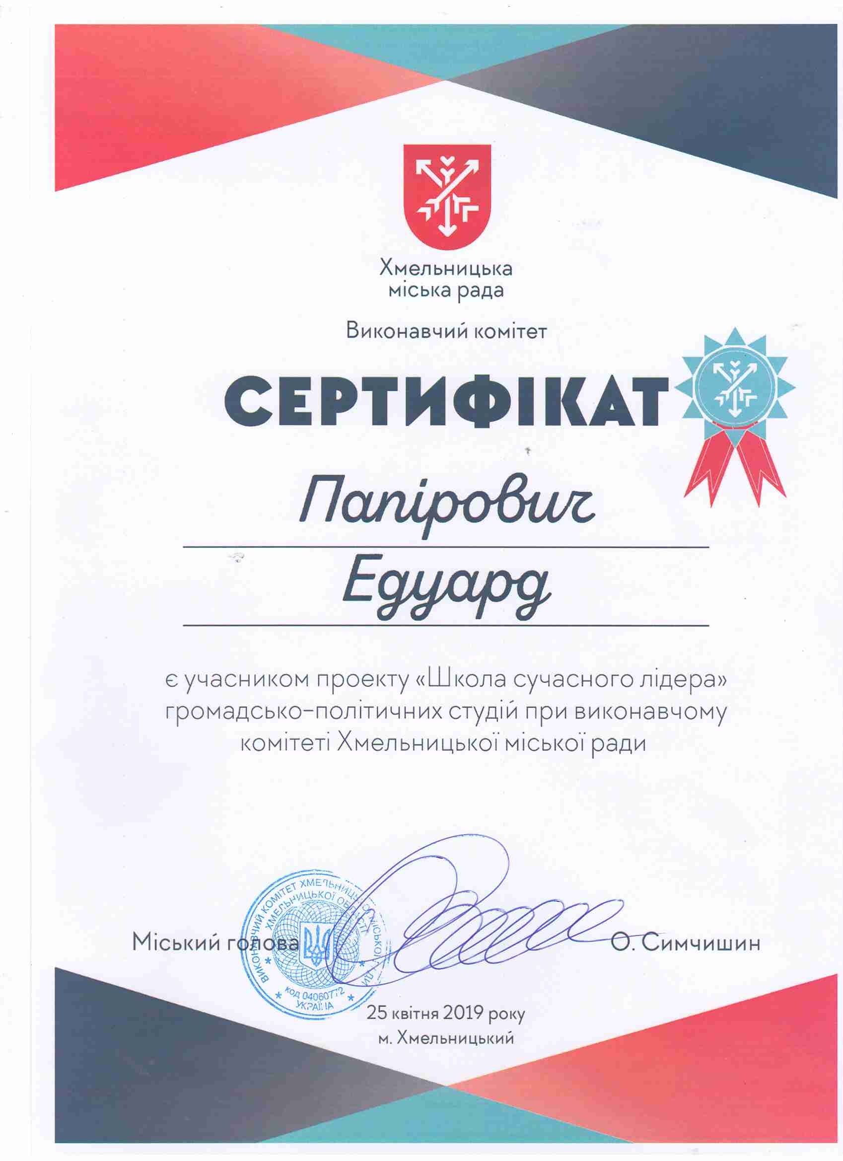 22-26 квітня 2019 року студенти Хмельницького економіко-правового коледжу проходили стажування у «Школі сучасного лідера», що відбувалося при Хмельницькій міській раді.