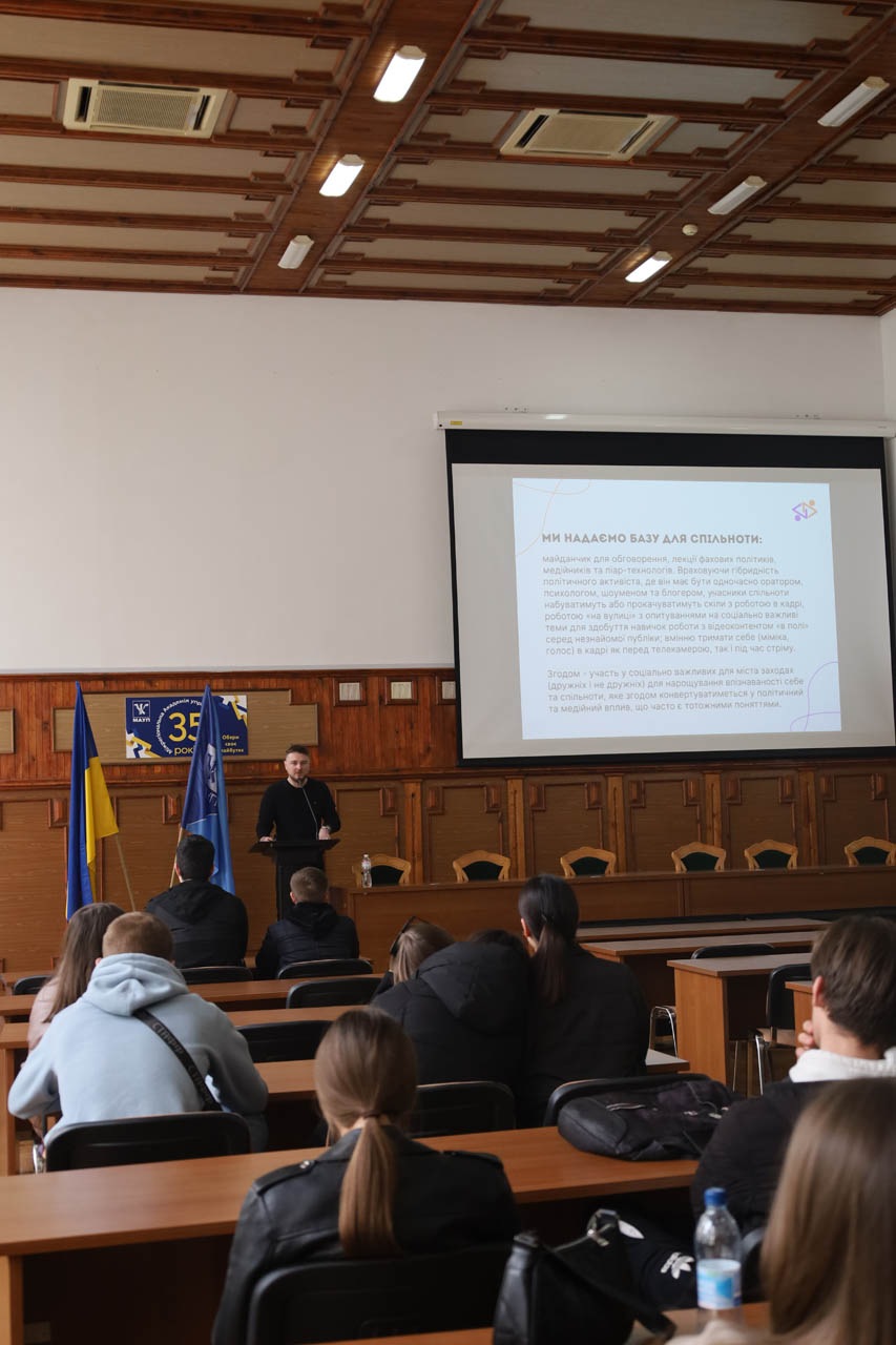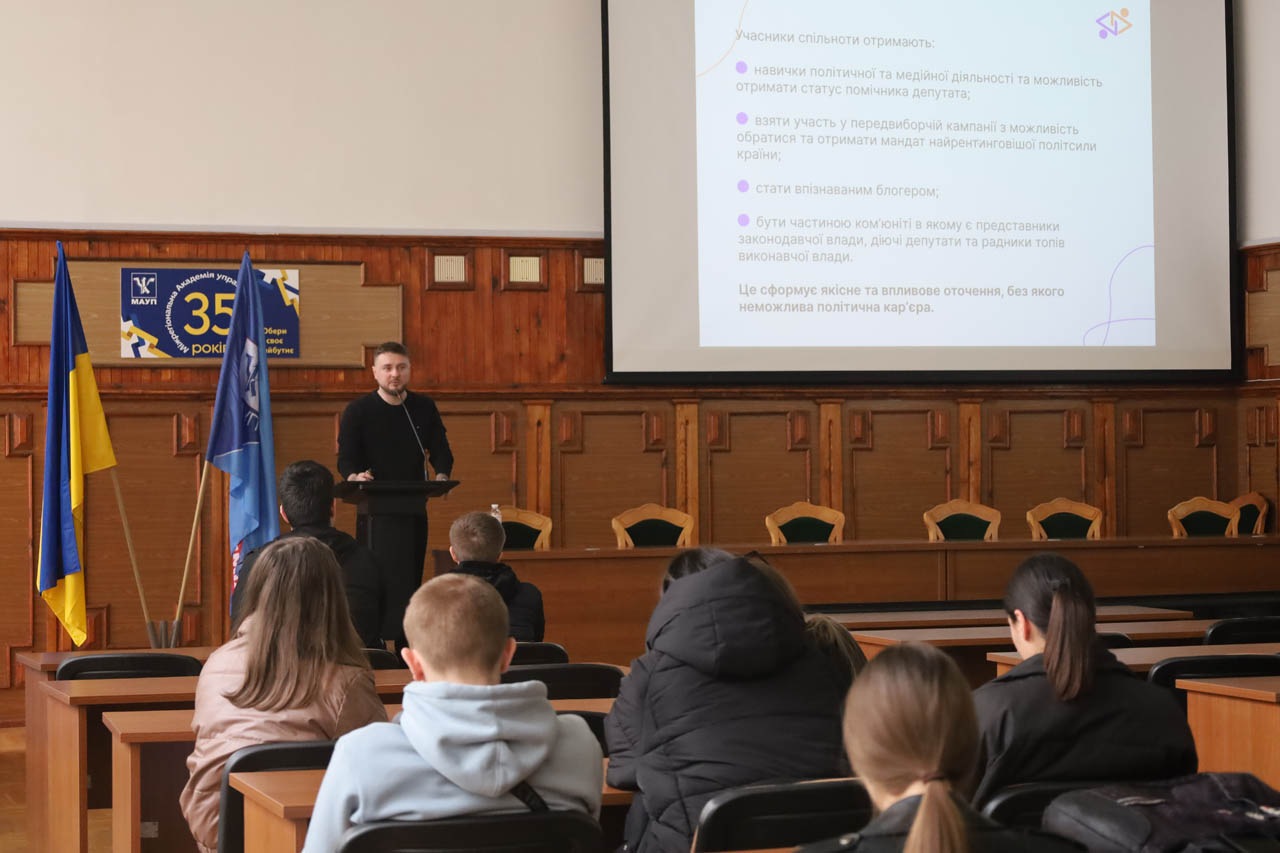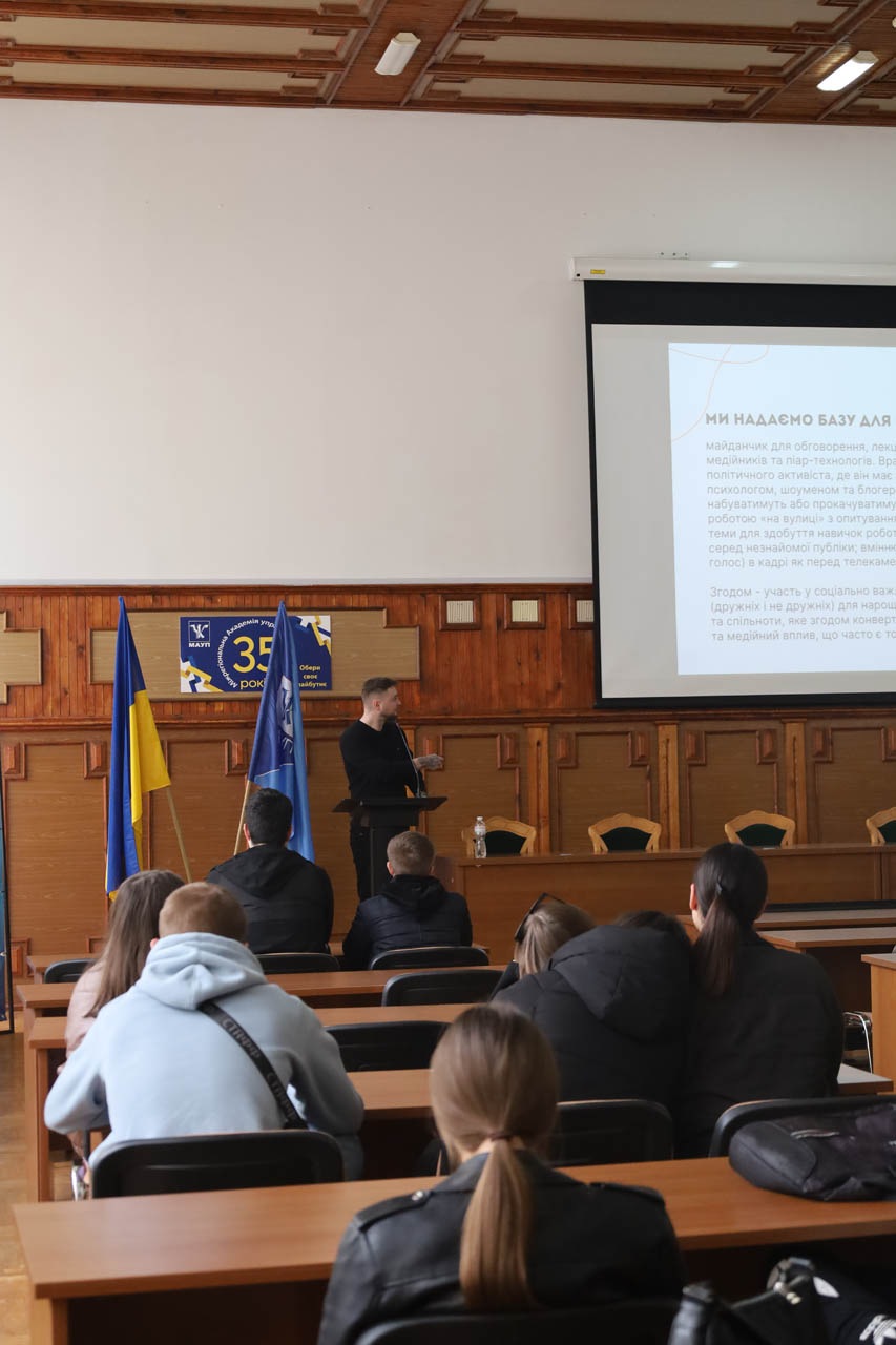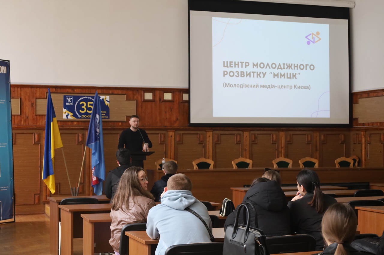 27 березня студенти МАУП, що навчаються за спеціальностями журналістика, міжнародні відносини, маркетинг, менеджмент та публічне управління, взяли участь у зустрічі з представниками Молодіжного медіацентру, які презентували проєкт «Від мрій до дій».