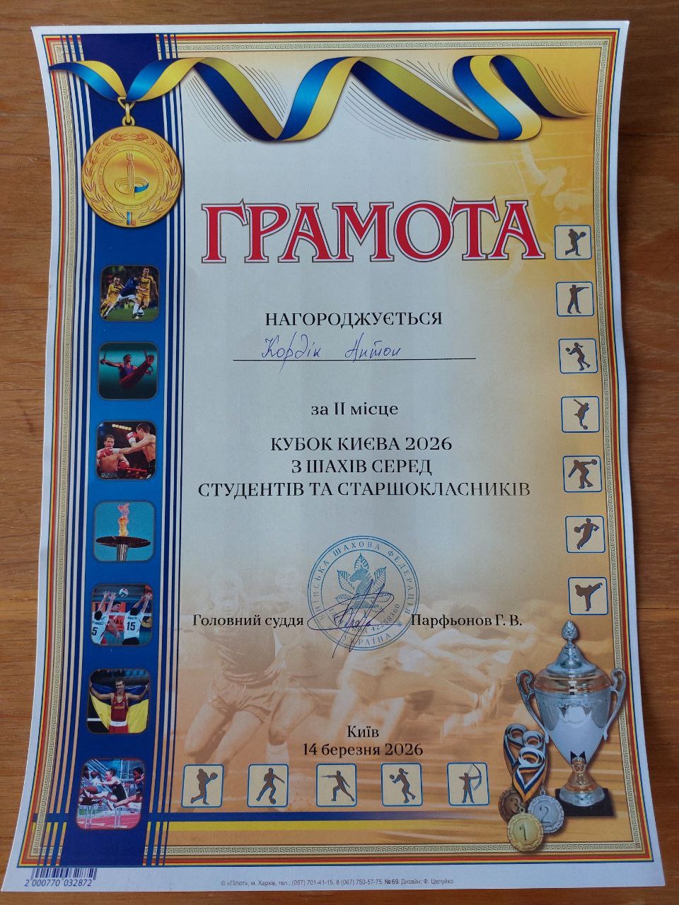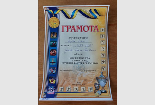 14 березня 2026 року в Києві відбувся відкритий Кубок Києва з шахів 2026 серед студентів та старшокласників, у якому взяли участь здобувачі освіти закладів вищої та загальної середньої освіти столиці та інших регіонів України. Змагання проходили у приміщенні Національного університету фізичного виховання і спорту України.