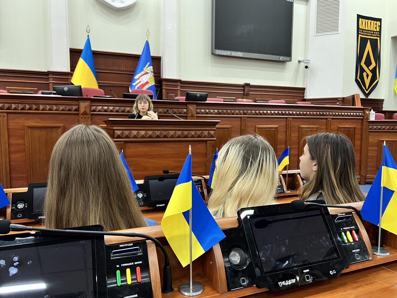 Під час заходу учасники мали змогу дізнатися більше про історію та принципи роботи столичного органу місцевого самоврядування, а також побачити зсередини важливі простори Київради - Колонну та сесійну зали.