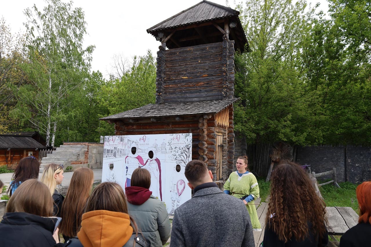 Цей культурно-історичний центр вражає автентичною реконструкцією Древнього Києва V-XIII століть, де кожен куточок дихає духом минулого. Студенти мали можливість: