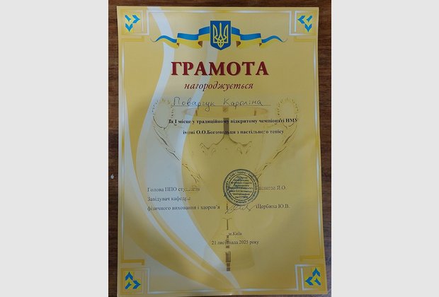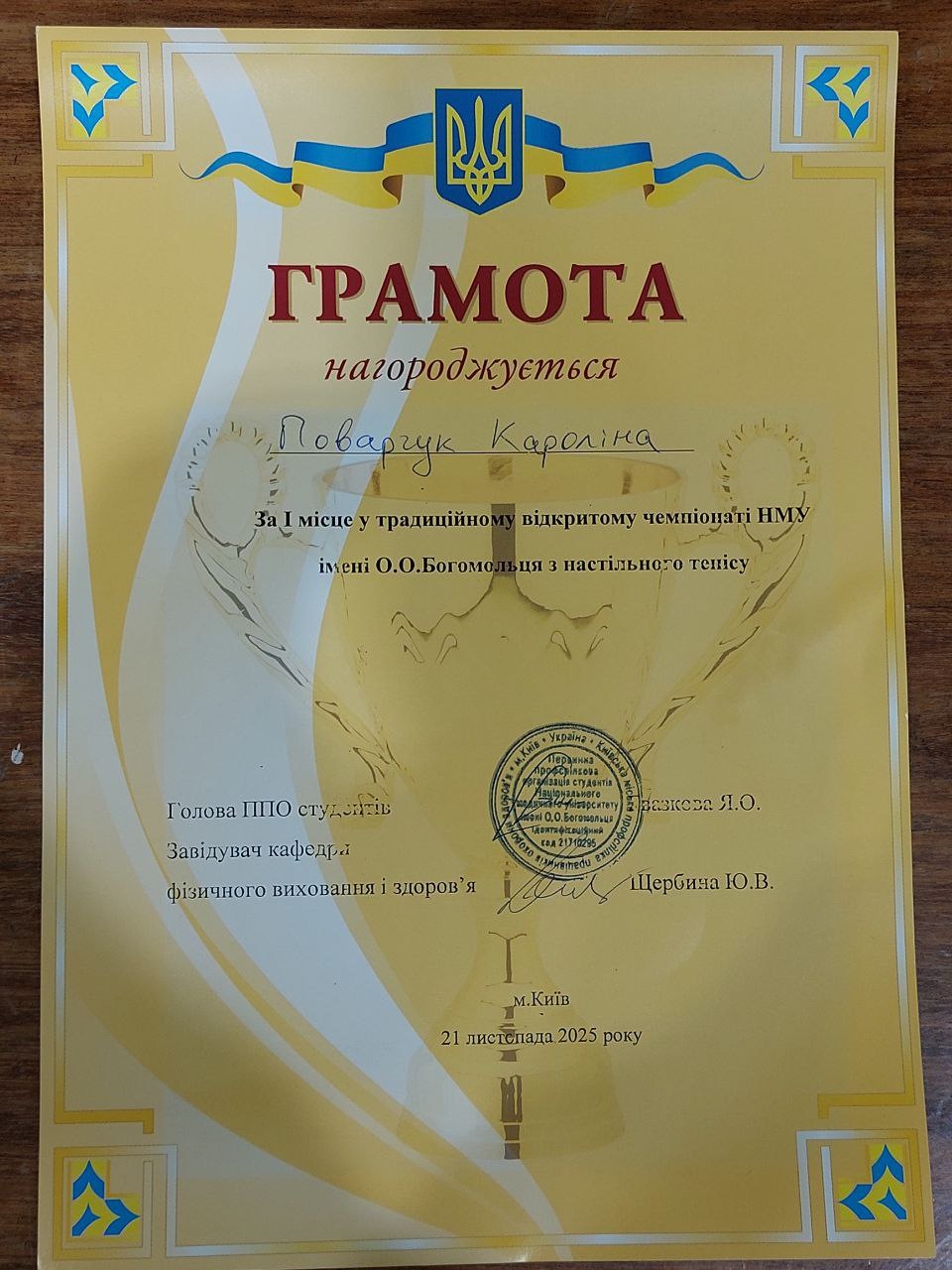 Студентка МАУП Кароліна Поварчук продемонструвала впевнену гру, вигравши всі свої зустрічі та здобувши перше місце серед дівчат. Це чудовий результат, який засвідчує високий рівень підготовки нашої спортсменки.