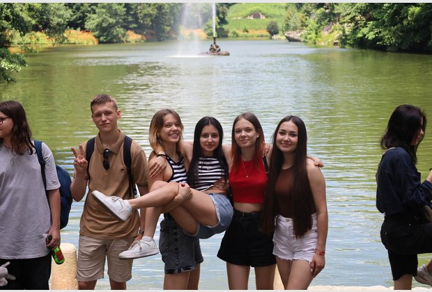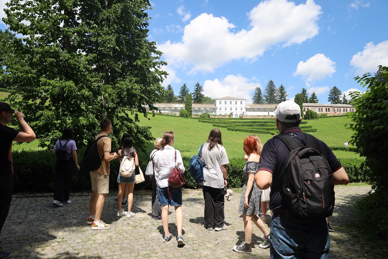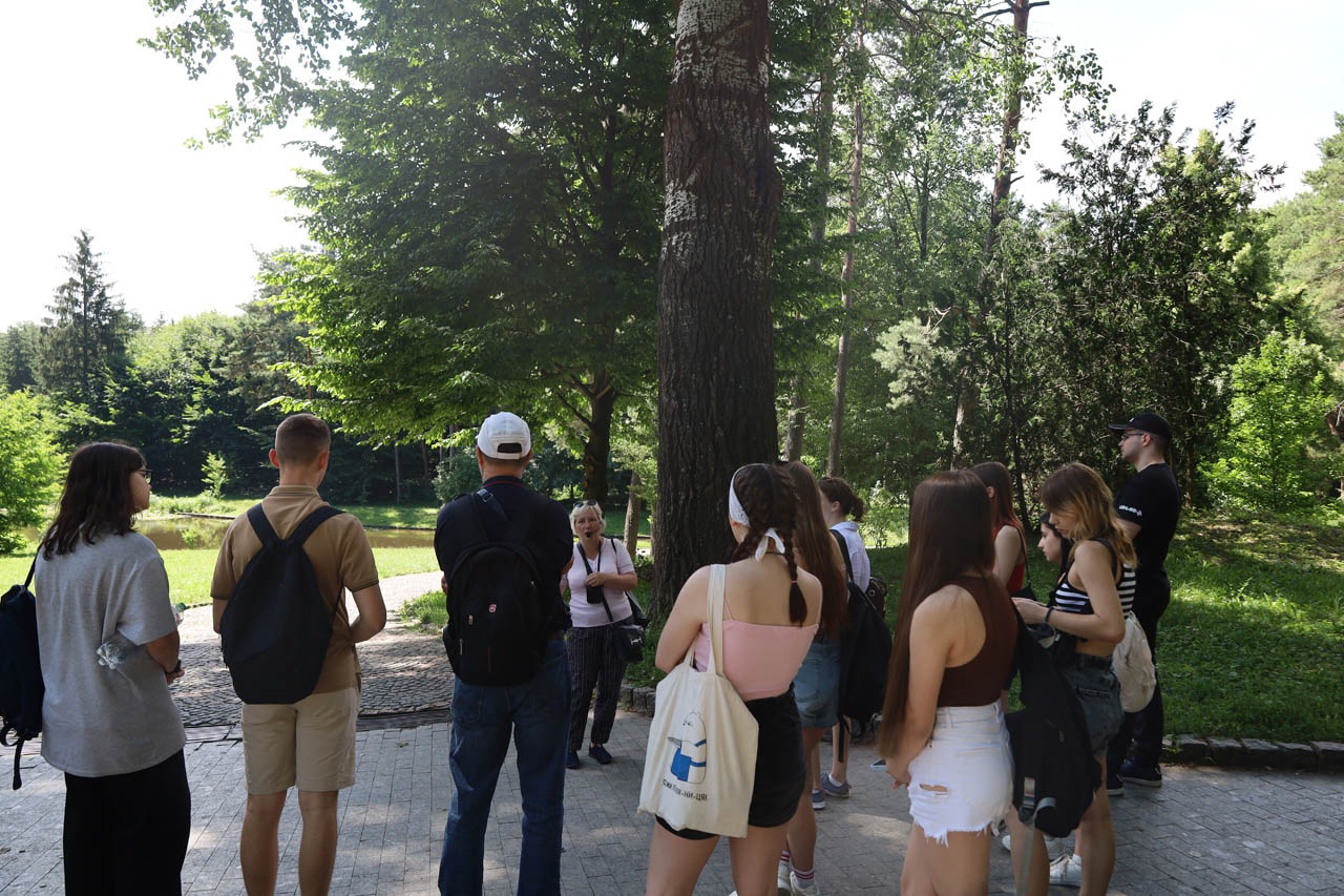 Студенти прогулялися звивистими доріжками парку, насолоджуючись красою природи та мармурових статуй, розташованих по всій території. Вони також не пропустили можливості відвідати знаменитий Кам'яний фонтан – одну з найпопулярніших пам'яток парку, що вражає своєю красою та масштабом.