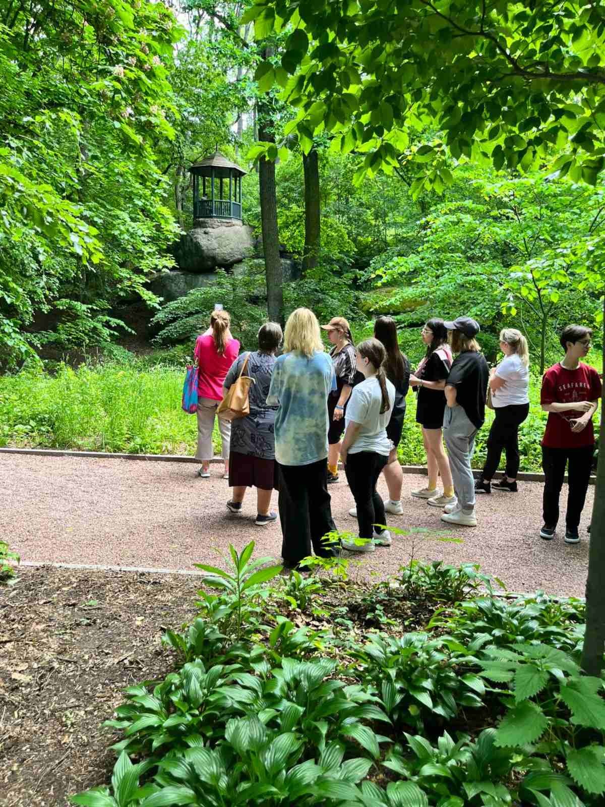 Живий інтерес у всіх викликала оглядова екскурсія. Парк є шедевром світового садово-паркового мистецтва кінця XVIII - початку XIX століть. Це зразок пейзажного паркового мистецтва - композиції води, землі, каменів, рослин, архітектурних споруд і скульптур. Площа парку сягає 180 гектарів. Парк розташований на околиці старовинного міста Умані Черкаської області. Студенти ознайомились з історією створення парку та його розвитком.