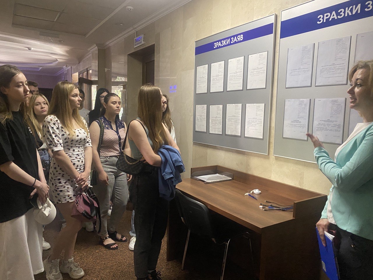 Помічниця голови ХАС Аліна Вінярська провела інтерактивну екскурсію залами судових засідань та розповіла майбутнім правникам про специфіку й порядок розгляду справ у апеляційній інстанції.