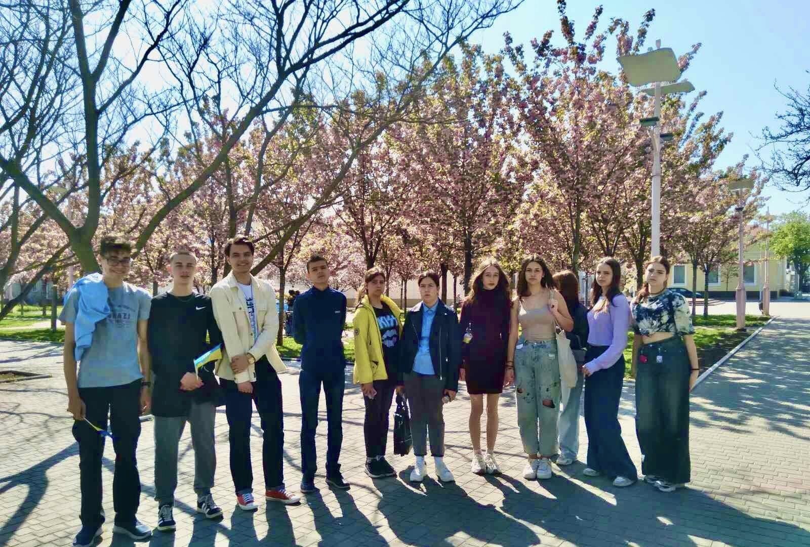 Але попереду чекало ще одне диво-дивне: квітучі дерева сакури в Театральному сквері зачарували красою, викликали чудові емоції.