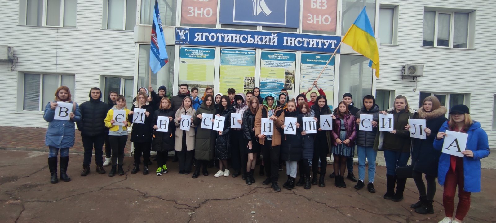 - Студенти Яготинського інституту, коледжу та викладачі приєднались до Всеукраїнської акції до дня єдності" В єдності наша сила"