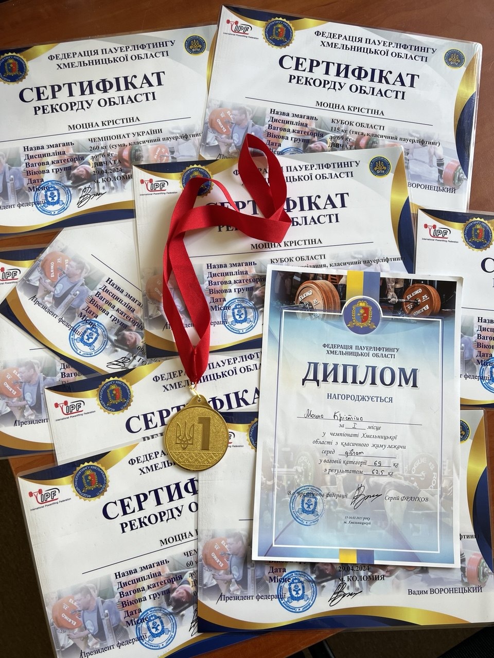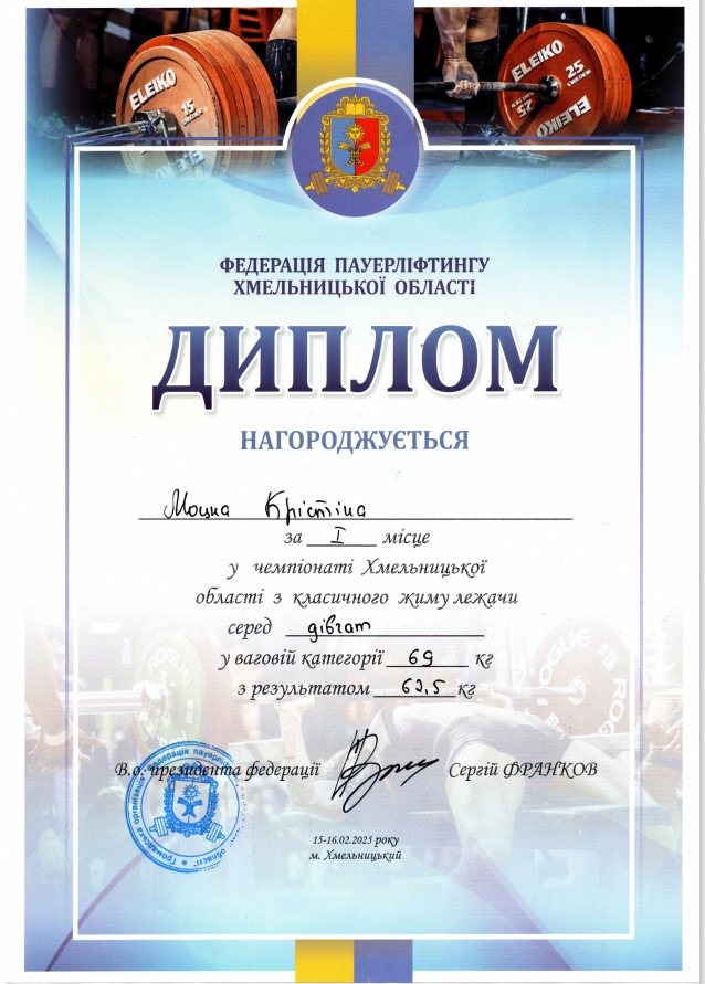 Студентка Хмельницького економіко-правового фахового коледжу МАУП Крістіна Моцна перемогла на чемпіонаті області з пауерліфтингу