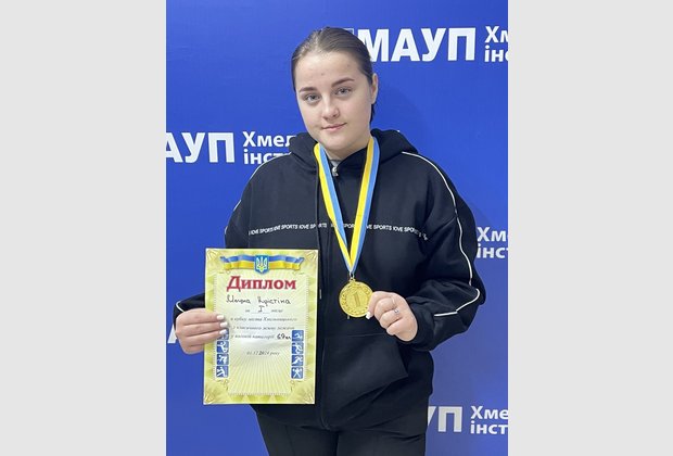 Студентка Хмельницького економіко-правового фахового коледжу МАУП Крістіна Моцна виборола перемогу на Кубку міста з класичного жиму лежачи