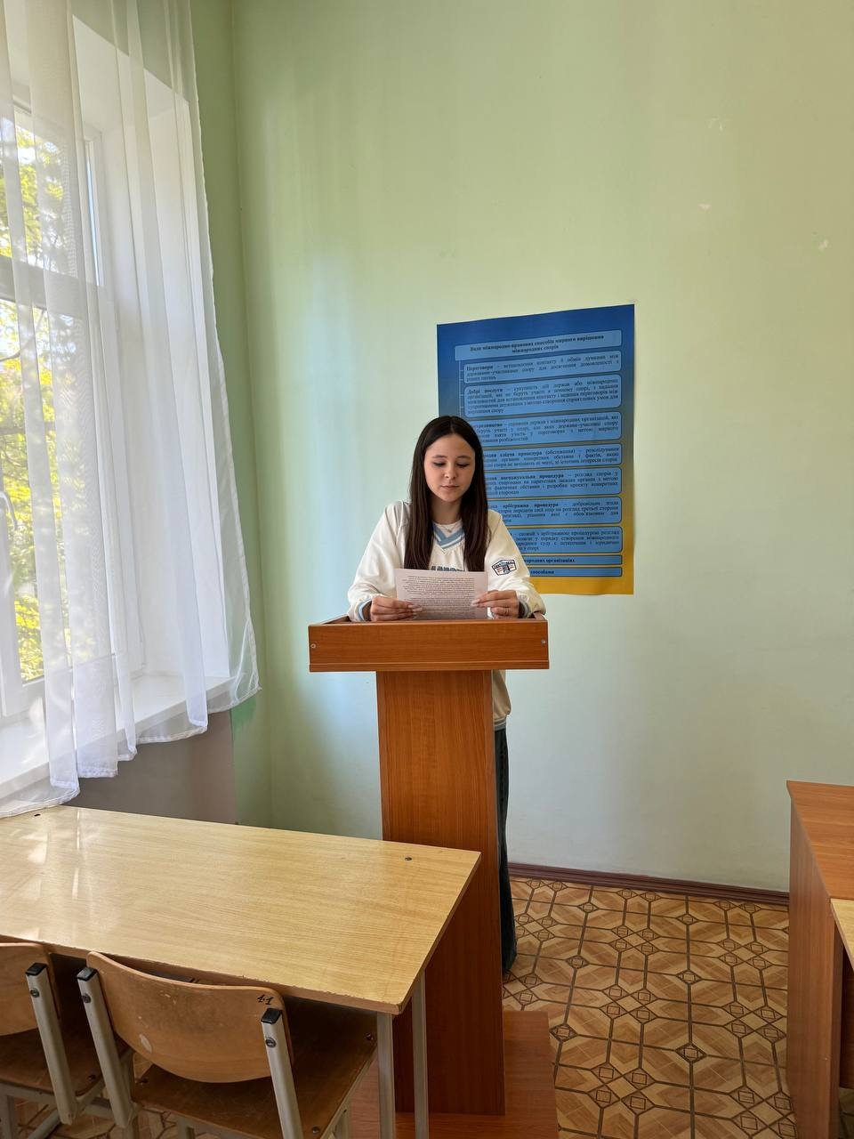 Студентка Кальчева О.Д. у своєму виступі подала детальну фактичну інформацію про історію започаткування офіційного свята під назвою «День захисника України» (починаючи з 14 жовтня 2014 року). Про його трансформацію у державне свято «День захисників і захисниць України», з липня 2021 року, розповіли студенти Кишлали Р.В. та Левашова В.О.