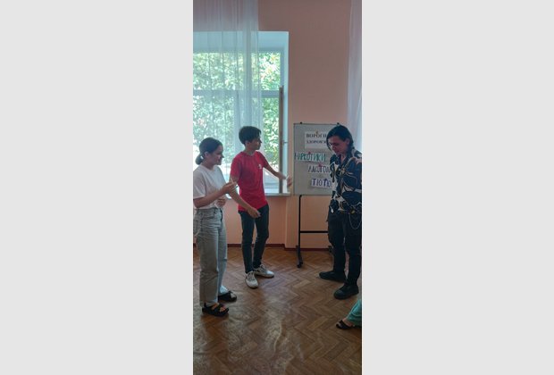 Колективне створення притчі, присвяченої всім, хто піддається таким спокусам, як наркотики, тютюн, алкоголь активізувало гарний настрій, викликало яскраві та щасливі посмішки учасників тренінгу.