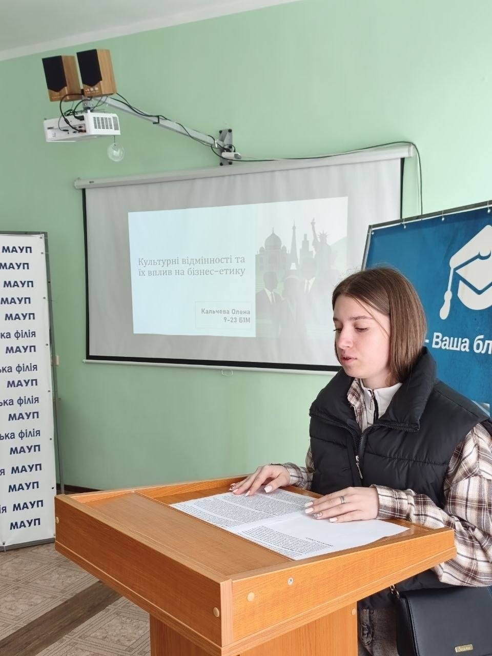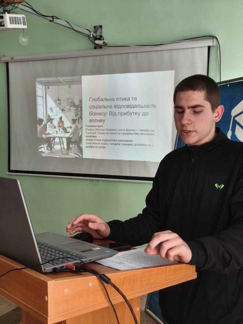 У заході взяли участь здобувачі вищої освіти ОПП Менеджмент всіх курсів філії. Учасники презентували глибокі та змістовні доповіді присвячені етичним підходам до успіху у сучасному міжнародному бізнесі. Виступи вирізнялися різноманіттям тем і підходів, що створило динамічну атмосферу для обговорення, де кожен здобувач мав змогу висловитися та отримати зворотний зв’язок.