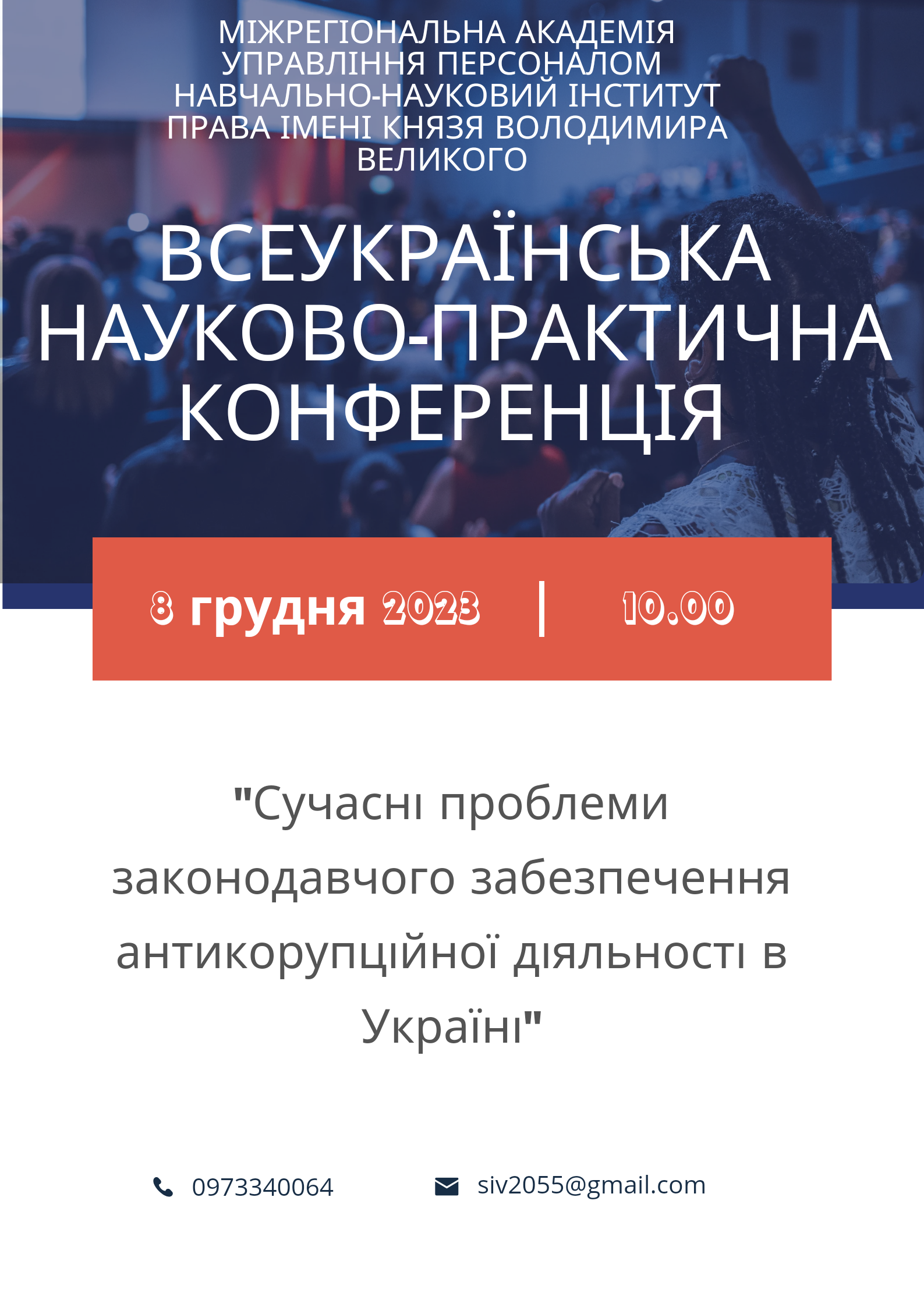 Запрошуємо взяти участь у роботі конференції «СУЧАСНІ ПРОБЛЕМИ ЗАКОНОДАВЧОГО ЗАБЕЗПЕЧЕННЯ АНТИКОРУПЦІЙНОЇ ДІЯЛЬНОСТІ В УКРАЇНІ»