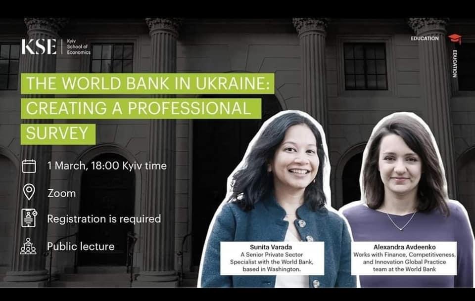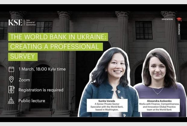 Доцент кафедри фінансової, банківської та страхової справи Інна Жук 1 березня долучилася до пізнавальної англомовної лекції за темою: "The World Bank in Ukraine: creating a professional survey". У ході заходу була чудова можливість дізнатися про те, як створювати опитування на професійному рівні, як Світовий Банк використовує спостереження у своїх проєктах, і останні новини про заходи з фінансового розвитку в Україні.