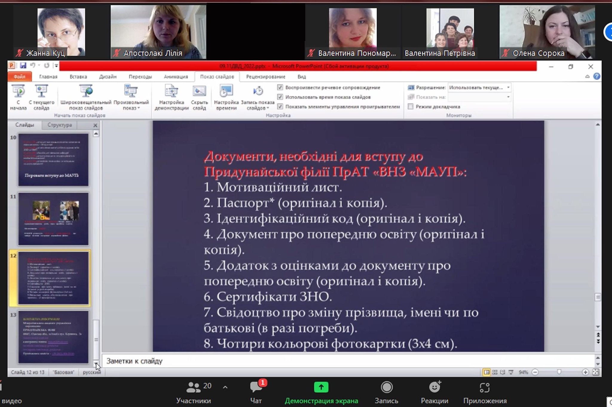 10 листопада 2022 р. представники Придунайської філії ПрАТ «ВНЗ «МАУП» долучилися до роботи інтерактивної платформи «Своя справа - вибір професії». У заході брали участь вищі навчальні заклади регіону, Ізмаїльській міськрайонний центр зайнятості, практичні психологи Саф’янівської сільської ради, фахівці психологічних служб Суворовської, Кілійської, Болградської територіальних громад та ін.