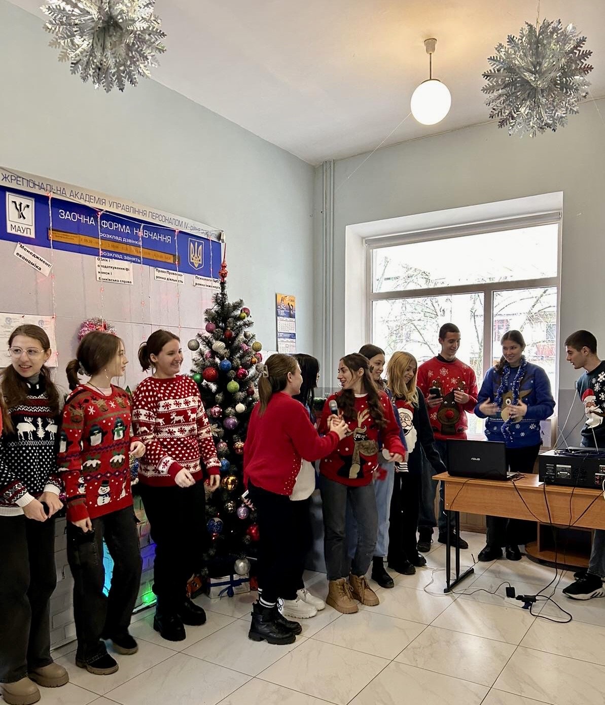 Святий Миколай здавна вважався опікуном воїнів, мандрівників, студентів, моряків та лучників. В Україні цей Святий вважається покровителем та заступником дітей. У Придунайському коледжі студенти І-ІІ курсів вирішили вшанувати цей день та трішечки перепочити. Напередодні вони створили затишний інтер’єр, прикрасивши ялинку, а на День Святого Миколая одягли різдвяні светри. Під ялинкою на них чекали смаколики. Привітання та найкращі побажання від Святого Миколая передала директорка коледжу доц. Ліганенко І.В. Директорка Придунайської філії ПрАТ «ВНЗ «МАУП» проф. ГуменниковаТ.Р. підкреслила, що Святий Миколай захищає не тільки моряків, мандрівників, студентів та дітей, а й воїнів, що боронять свої країни, привітавши з Днем Збройних Сил України. Студенти в свою чергу висловили щирі привітання та побажання добра та миру українським родинам. Отримавши солодощі, студенти співали, проводили різноманітні конкурси, що дозволило кожному відчути себе в дружньому колі друзів, надихнулися бажанням робити добрі справи та наполегливо навчатися.