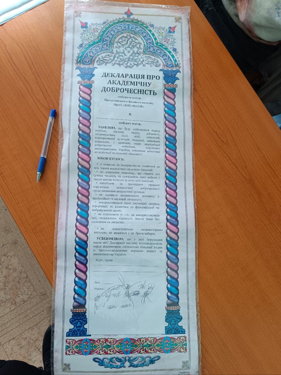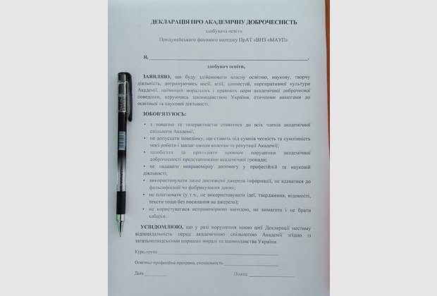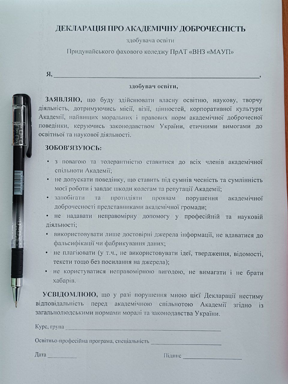 Одним із ключових елементів Тижня стало підписання студентами Декларації про академічну доброчесність здобувачів вищої освіти Придунайської філії ПрАТ «ВНЗ «МАУП» та Декларації про академічну доброчесність здобувачів фахової передвищої освіти Придунайського фахового коледжу ПрАТ «ВНЗ «МАУП».