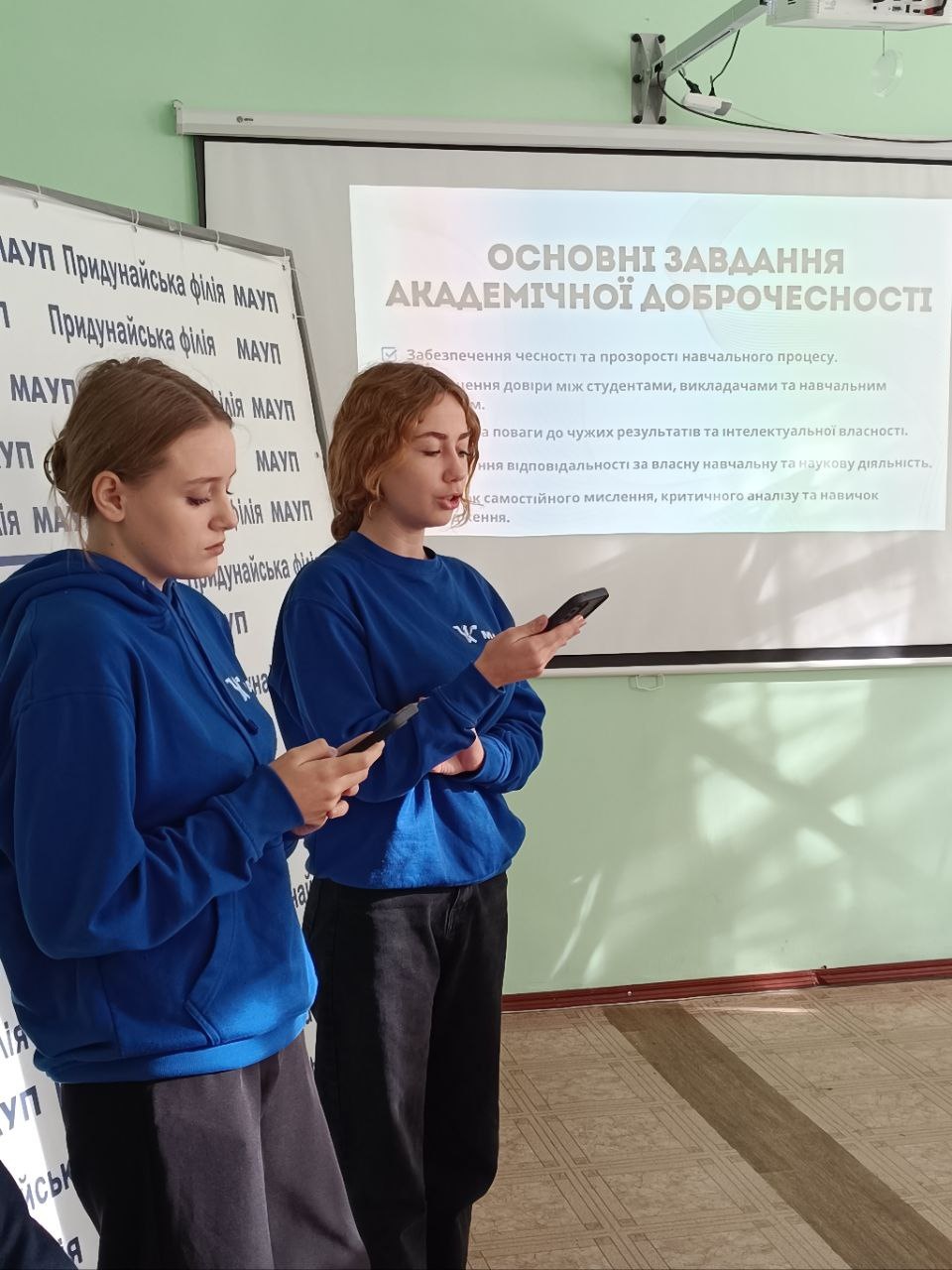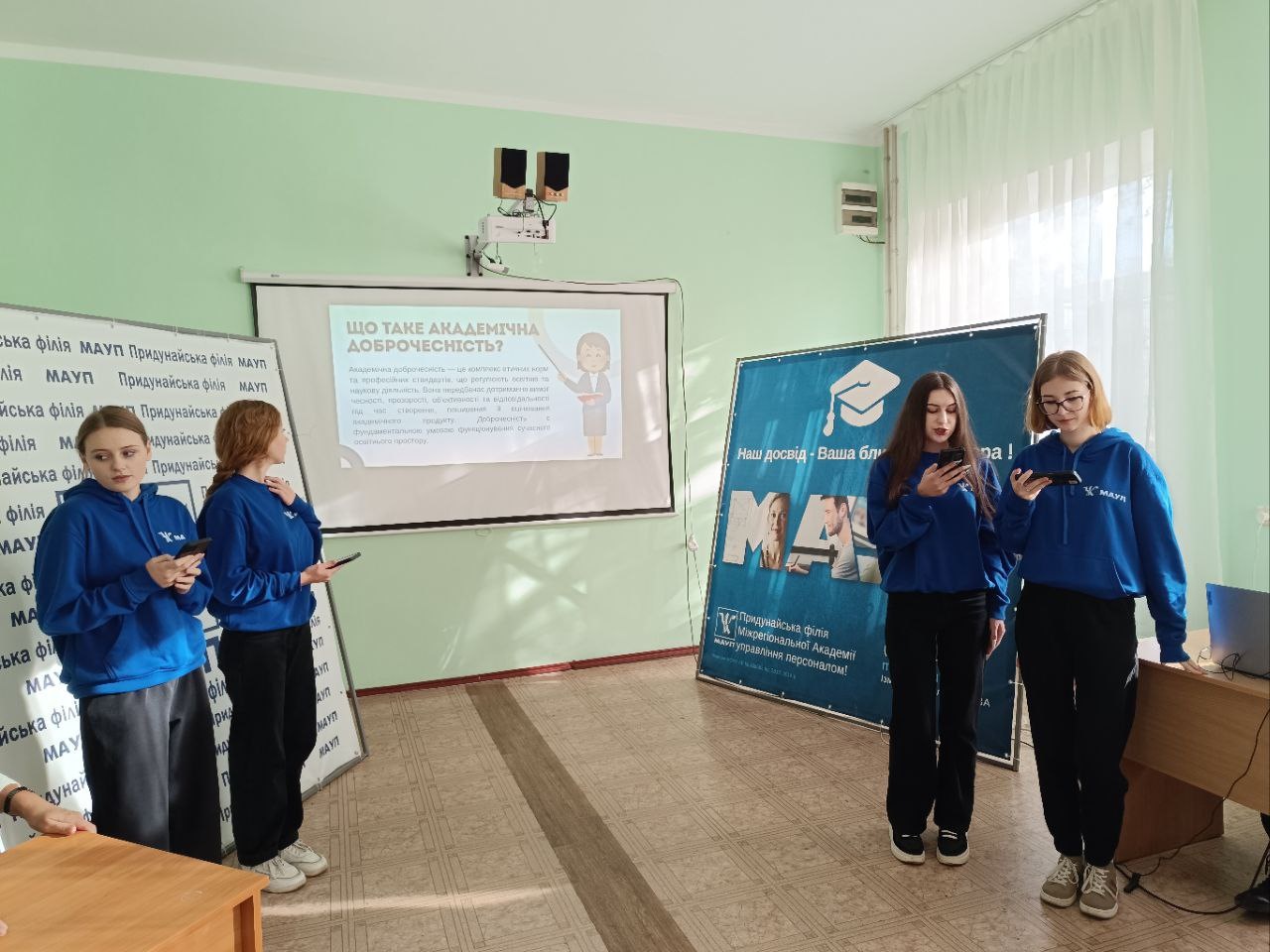 З 24 листопада в Придунайській філії та Придунайському фаховому коледжі ПрАТ «ВНЗ «МАУП»» розпочався Тиждень доброчесності – серія заходів, спрямованих на формування культури академічної чесності, відповідальності та поваги до етичних норм серед студентів і викладачів. Був реалізована План заходів з метою посилення уваги до питань чесного навчання, протидії плагіату та підвищення рівня обізнаності молоді щодо принципів доброчесної поведінки.