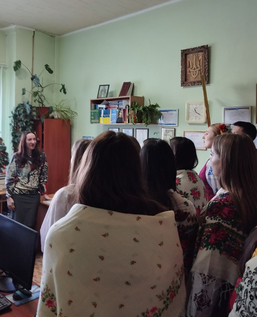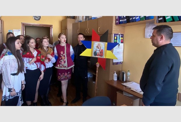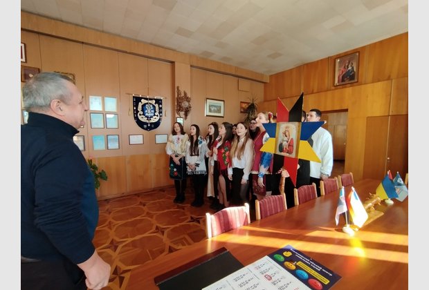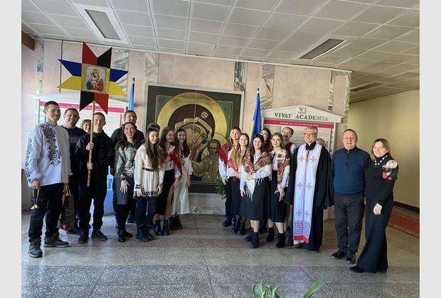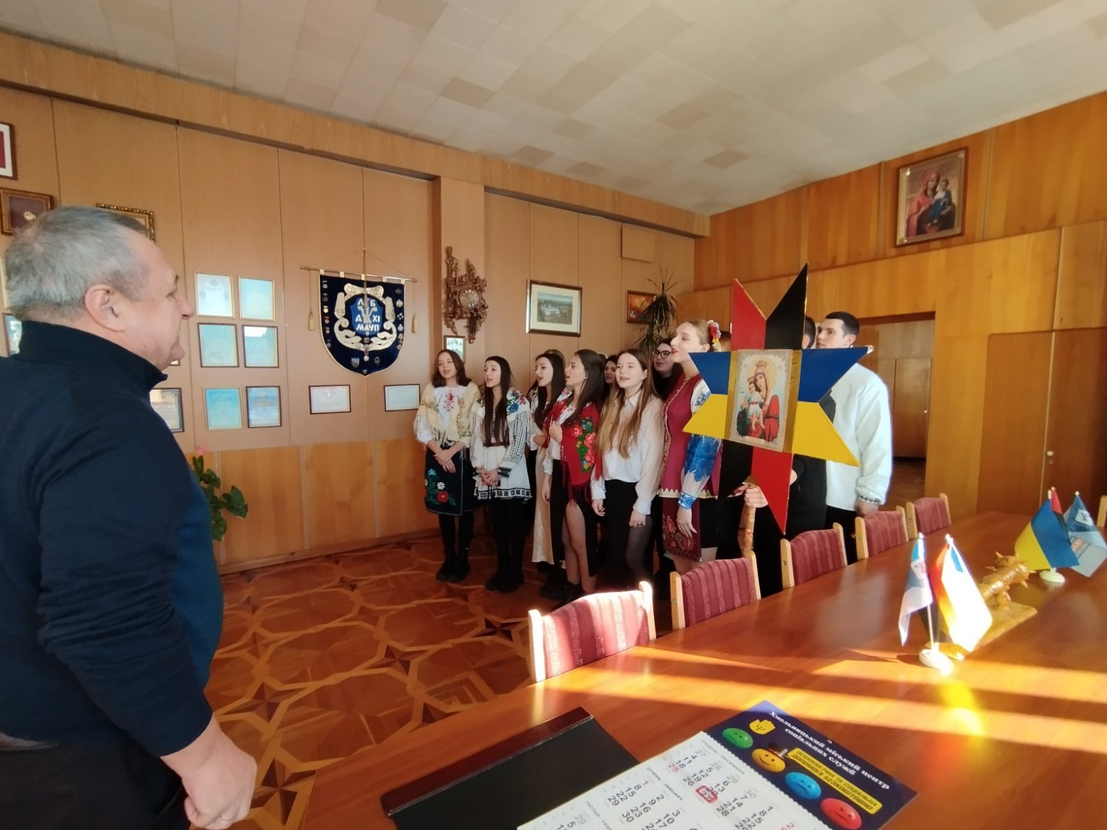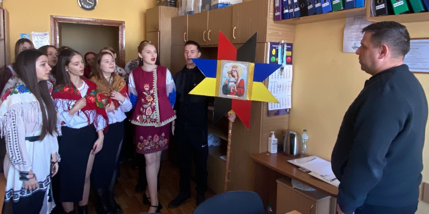 Студенти Інституту та Коледжу розпочали щедрування-колядування з виконання твору Миколи Леонтовича «Щедрик» у кабінеті директора Інституту Леоніда Білого.