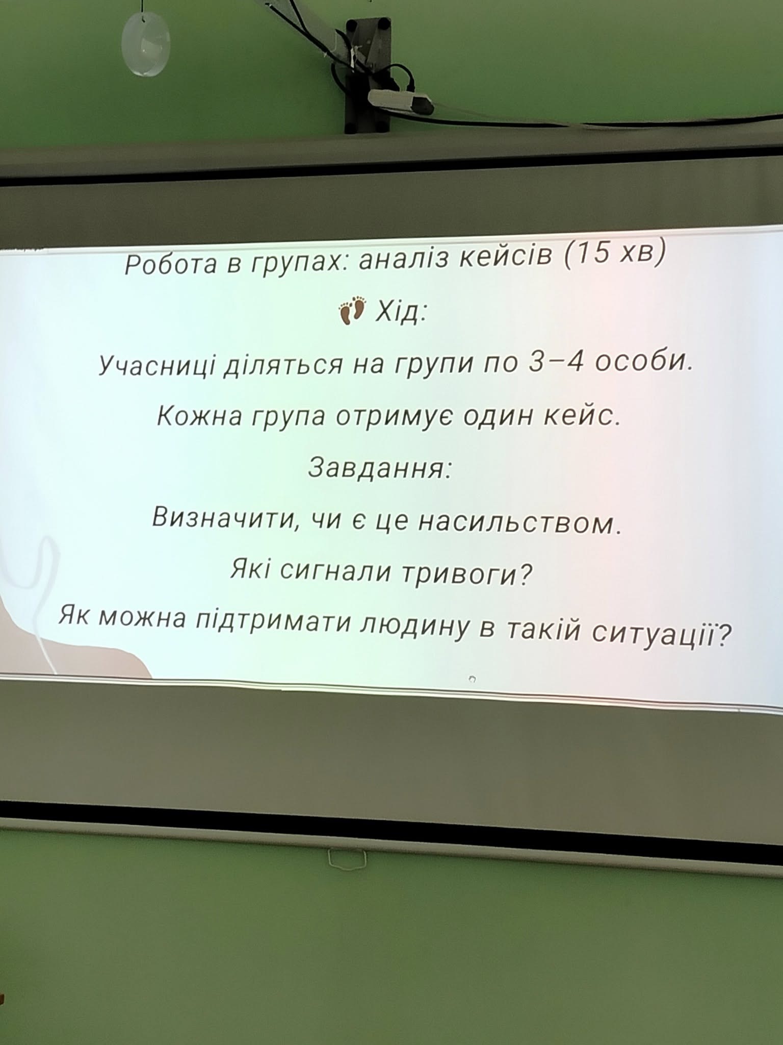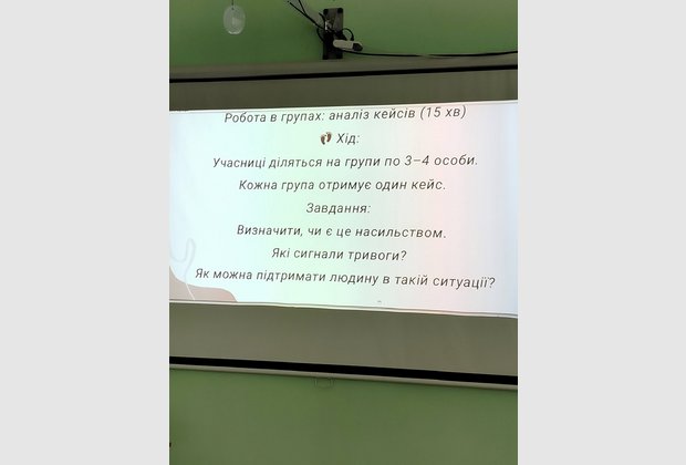 На тренінгу говорили про те, що таке насильство — не лише фізичне, а й психологічне, економічне, сексуальне. Через інтерактивні вправи, життєві кейси та гру «Світлофор» студенти вчилися розпізнавати сигнали небезпеки: контроль, ізоляцію, маніпуляції, тиск.