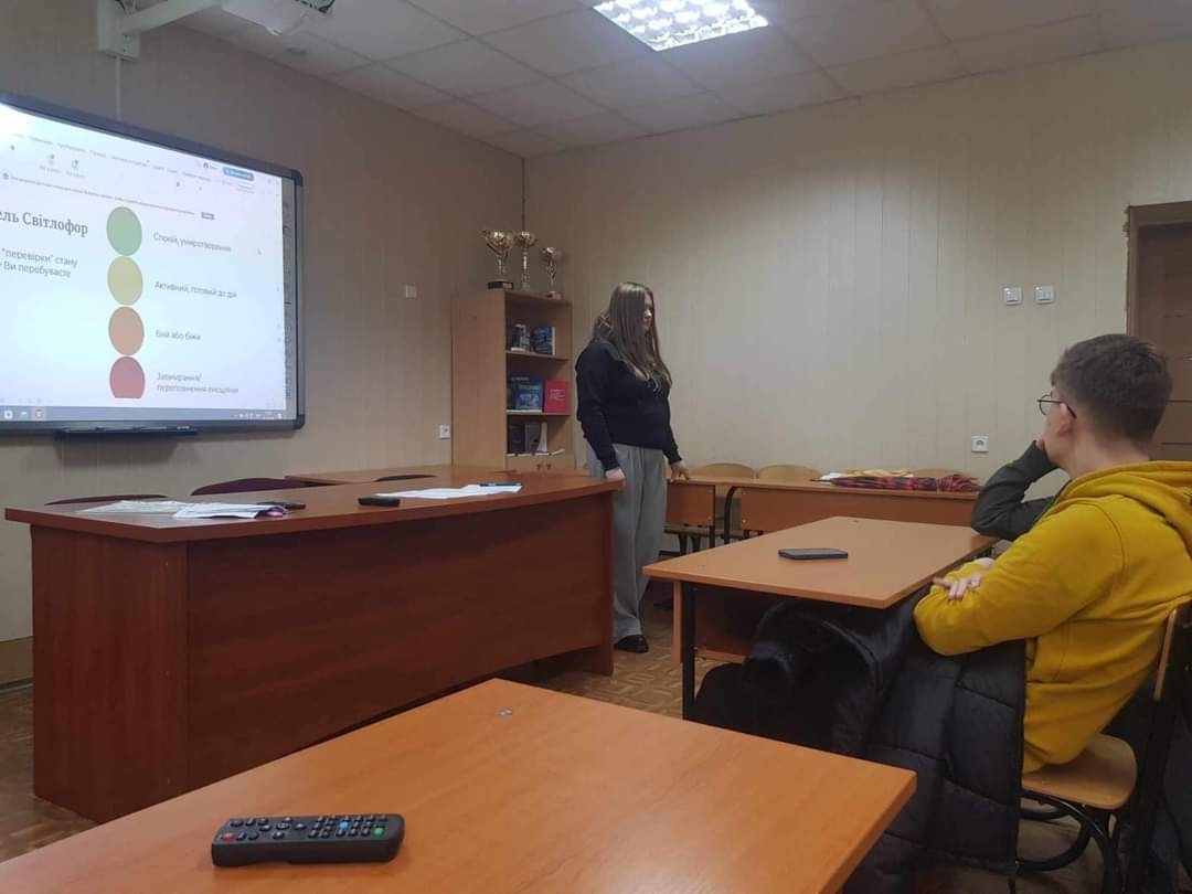 Студенти дізналися про психологічну стійкість;стрес та стресові реакції;еустрес; вигорання та вплив стратегій поведінки, які допомагають; модель “Світлофор” Марка Уолша, яка відображає стани нервової системи;способи регуляції;першу психологічну допомогу;відмінність стресу та травми;вплив травми на життя людини. А також було приділено увагу емоційному стану. Отримані знання є надзвичайно корисними і необхідними для підтримки психологічного здоров'я під час війни