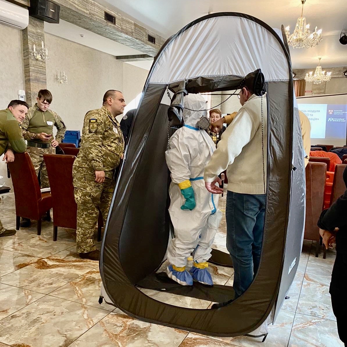 Деякі модулі вимагали вміння носити ЗІЗ (засоби індивідуального захисту), знання принципів проведення дезактивації, врахування можливості вторинних інцидентів. Інформація дуже корисна та актуальна під час воєнних дій. Завтра навчання продовжаться.