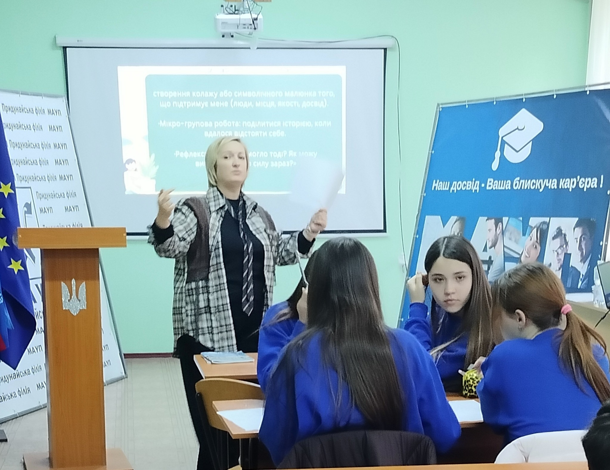Cтуденти Придунайського фахового коледжу МАУП мали можливість взяти участь у тренінгу «Мої кордони – моя сила», який провела Аіда Затцепіна — клінічний психолог, сексолог, арттерапевтка, КПТ‑терапевтка, ігропрактик, тренерка, членкиня Міжнародної асоціації психологів і тренерів експертів, викладачка Інституту практичної психології О. Гаркавця, авторка колод МАК.