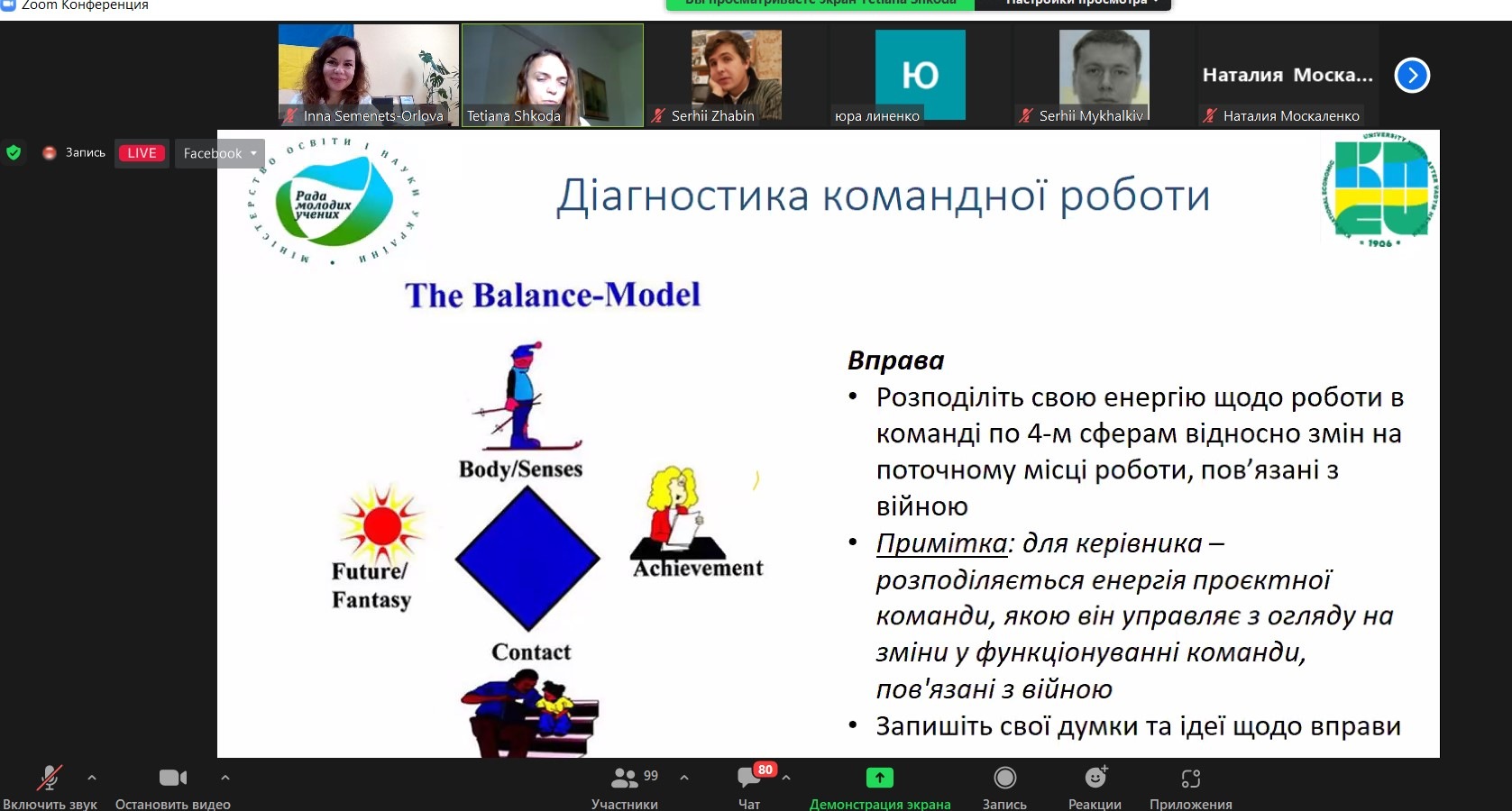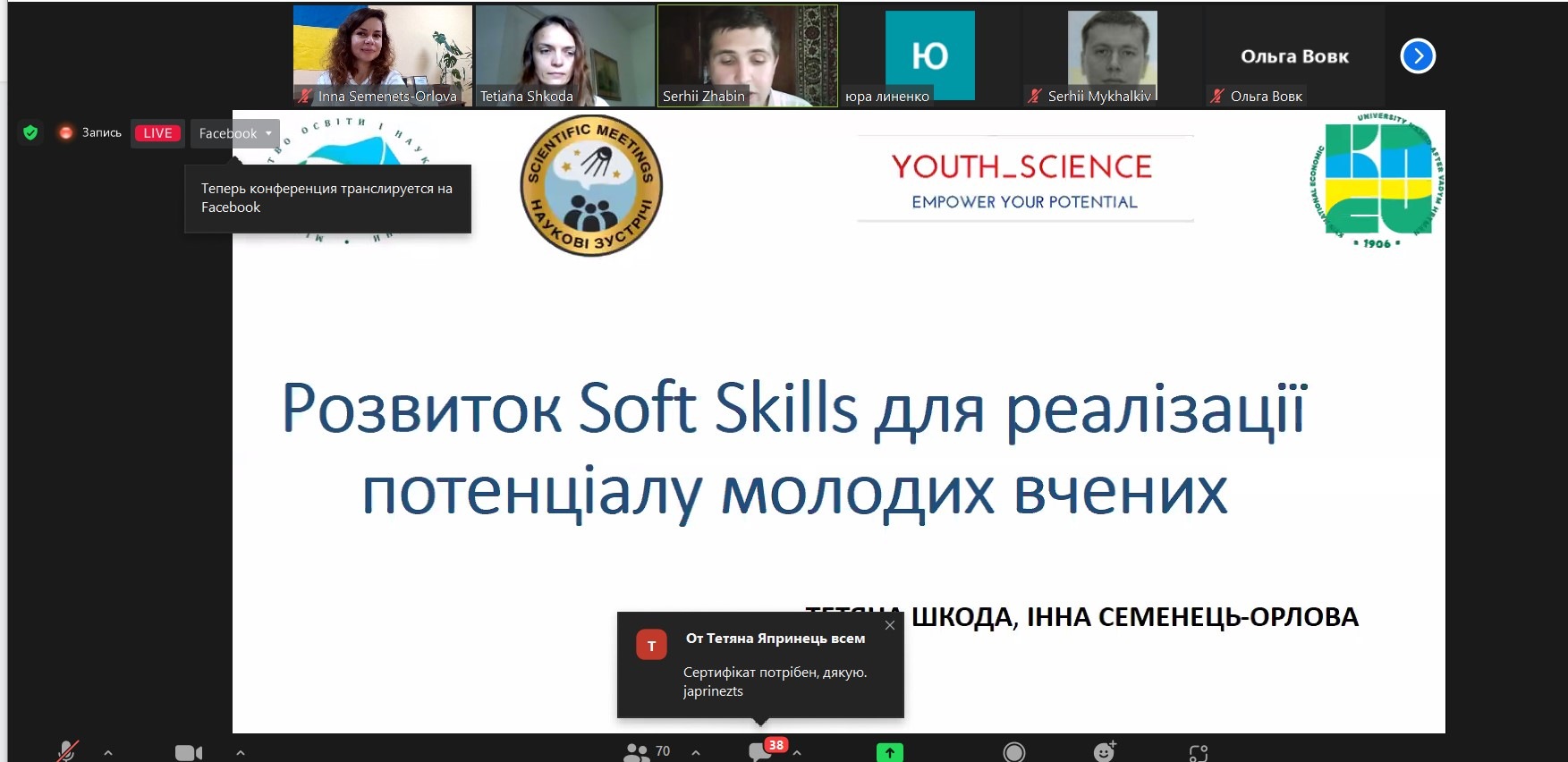 19 липня директор Навчально-наукового інституту управління, економіки та бізнесу Семенець-Орлова І.А. провела тренінг для молодих дослідників з усієї України на тему розвитку м'яких навичок. Захід був організований у співпраці із Радою молодих вчених при МОН України та онлайн-лекторієм "Наукові зустрічі". До розмови про важливість м'яких навичок у реалізації потенціалу молодих дослідників долучилося більше 300 учасників (зум-конференція та онлайн-трансляція).