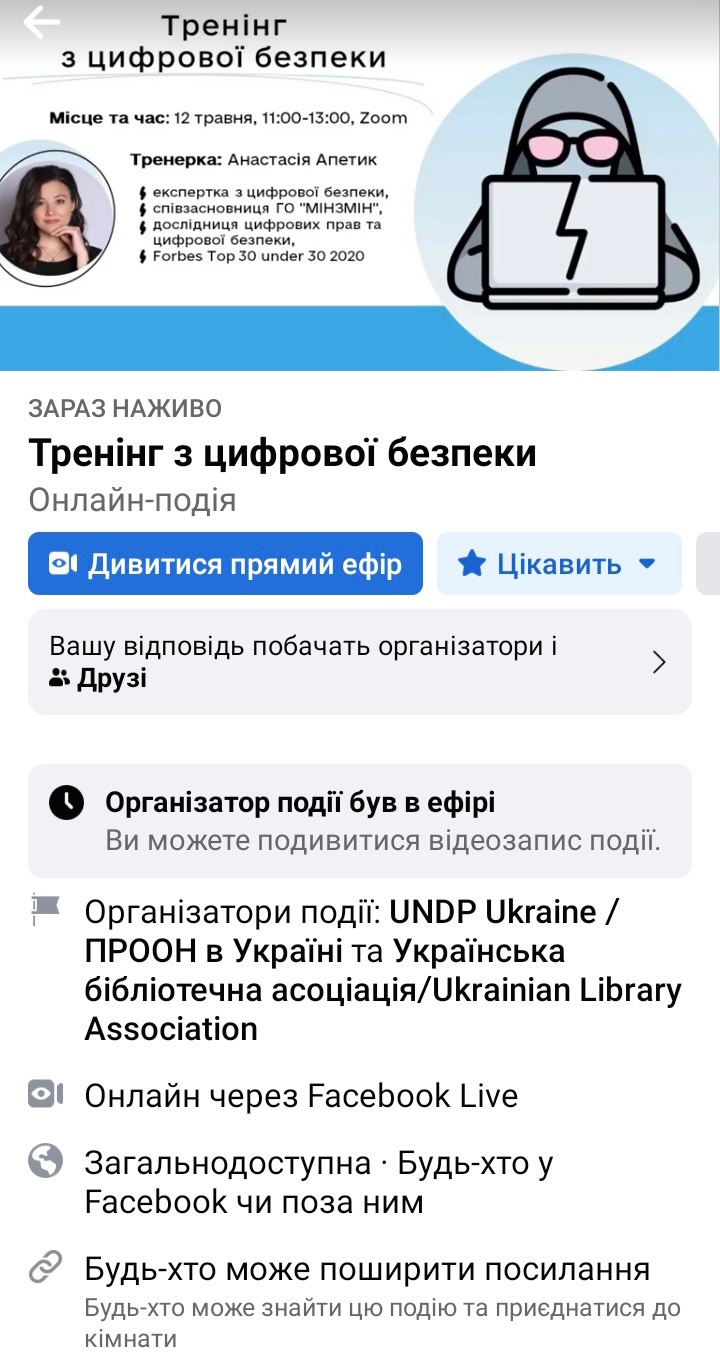 Тренерка – Анастасія Апетик, юристка, експертка з цифрової безпеки, співзасновниця ГО «МІНЗМІН», дослідниця цифрових прав та цифрової безпеки програми Resilient Ukraine International Centre for Defence and Security, авторка освітніх програм. Навчила понад 250 тисяч українців основ цифрової безпеки. У 2020 році ввійшла в рейтинг Top 30 under 30. 2021 року стала лауреатом премії Кабінету Міністрів України за особливі досягнення в розбудові України.