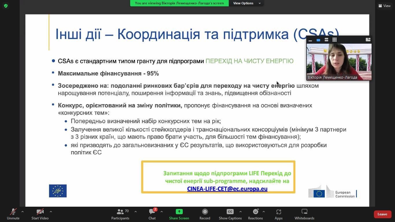 Викладачі Навчально-наукового інституту управління, економіки та бізнесу прослухали вебінар про грантові програми Європейського союзу (Цифрова Європа, Life).