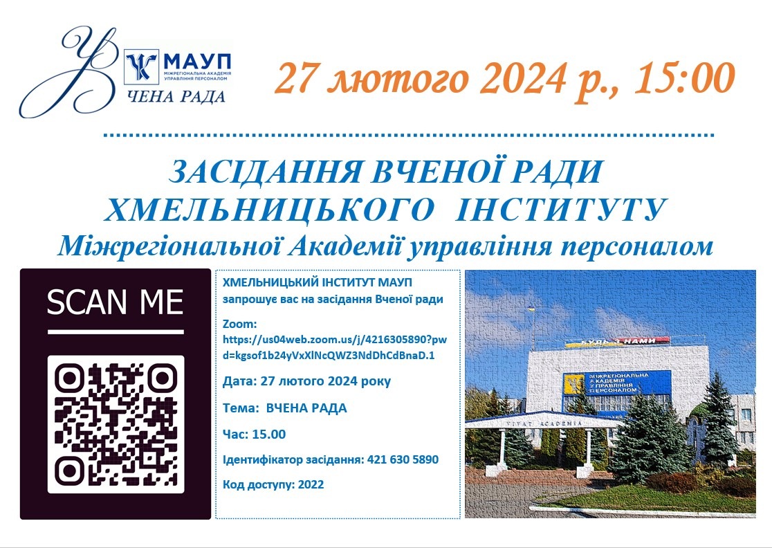 26 лютого 2024 року в Хмельницького інституту МАУП відбулося засідання Вченої ради на якому розглянули питання організації освітнього процесу та наукової роботи.