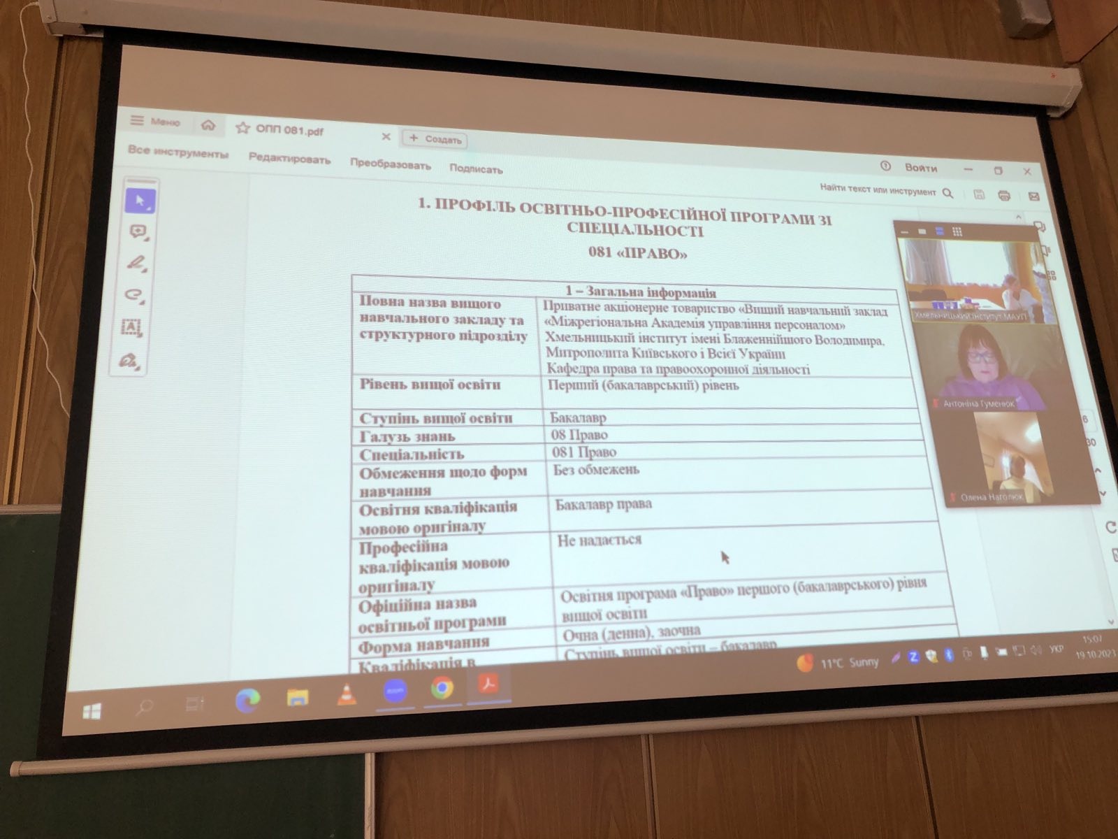 19 жовтня у Хмельницькому інституті МАУП відбулося чергове засідання Науково-методичної ради. На засідання Обговорили зміни до освітніх програм підготовки бакалаврів та магістрів зі спеціальності 081 «Право».