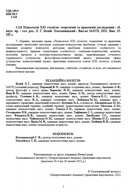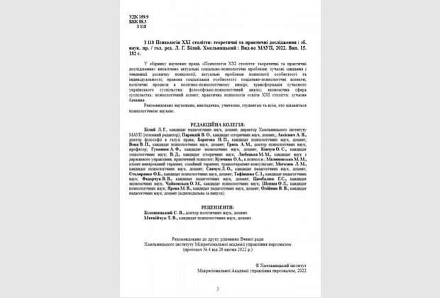 Кафедрою психології Хмельницького інституту МАУП підготовлено до друку п’ятнадцятий випуск збірника наукових праць «Психологія ХХІ століття: теоретичні та практичні дослідження».
