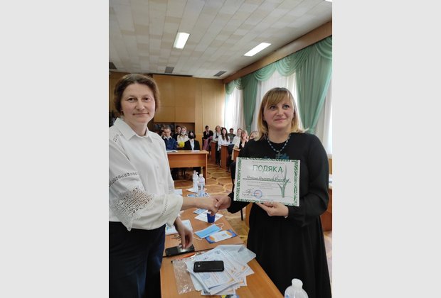 Громової Дар’ї Василівни (здобувачку освіти 10 класу Хмельницького НВО №28) за наукову роботу «Сторітелінг на уроках у початковій школі». Науковий керівник: кандидат педагогічних наук, доцент Дубина Людмила Григорівна.