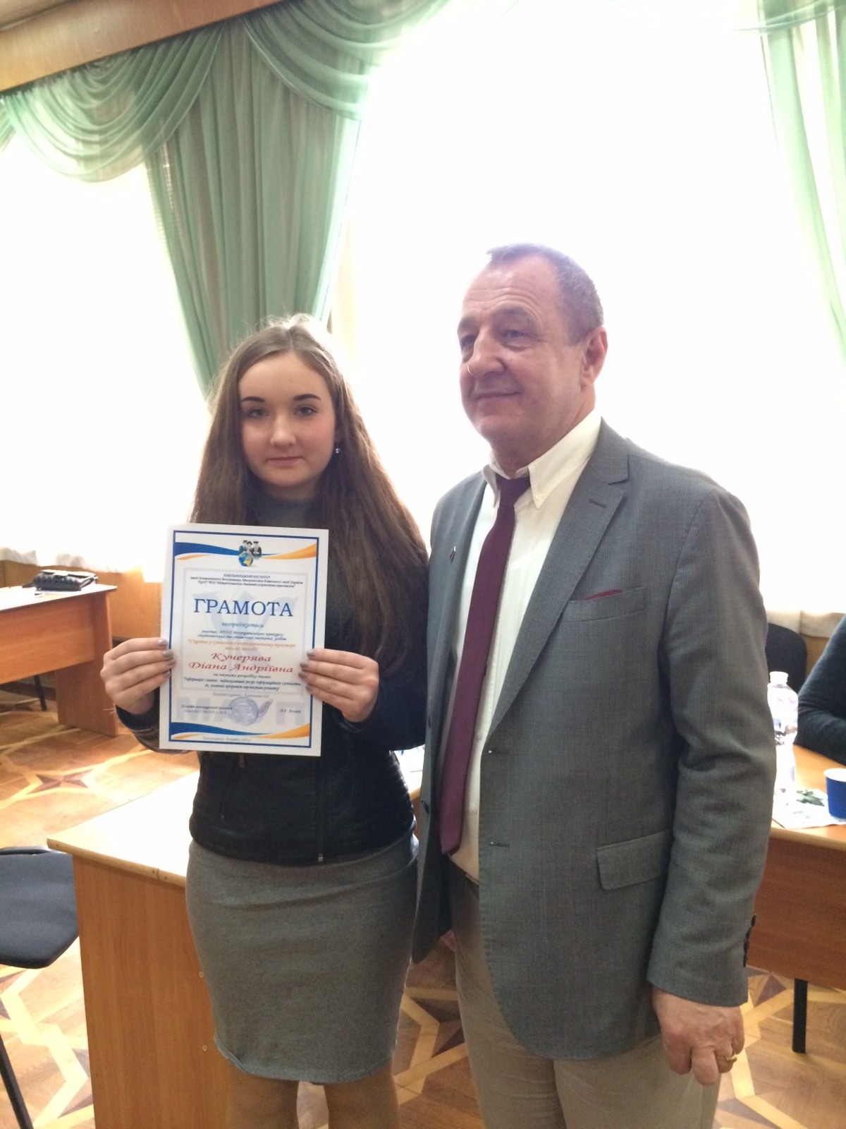 Кондратюк Надії Володимирівни (студентки Хмельницької гуманітарно-педагогічної академії) за наукову роботу: «Психологічні особливості поведінки екстравертів та інтровертів у підлітковому віці». Науковий керівник: кандидат психологічних наук Чорна Наталія Василівна.