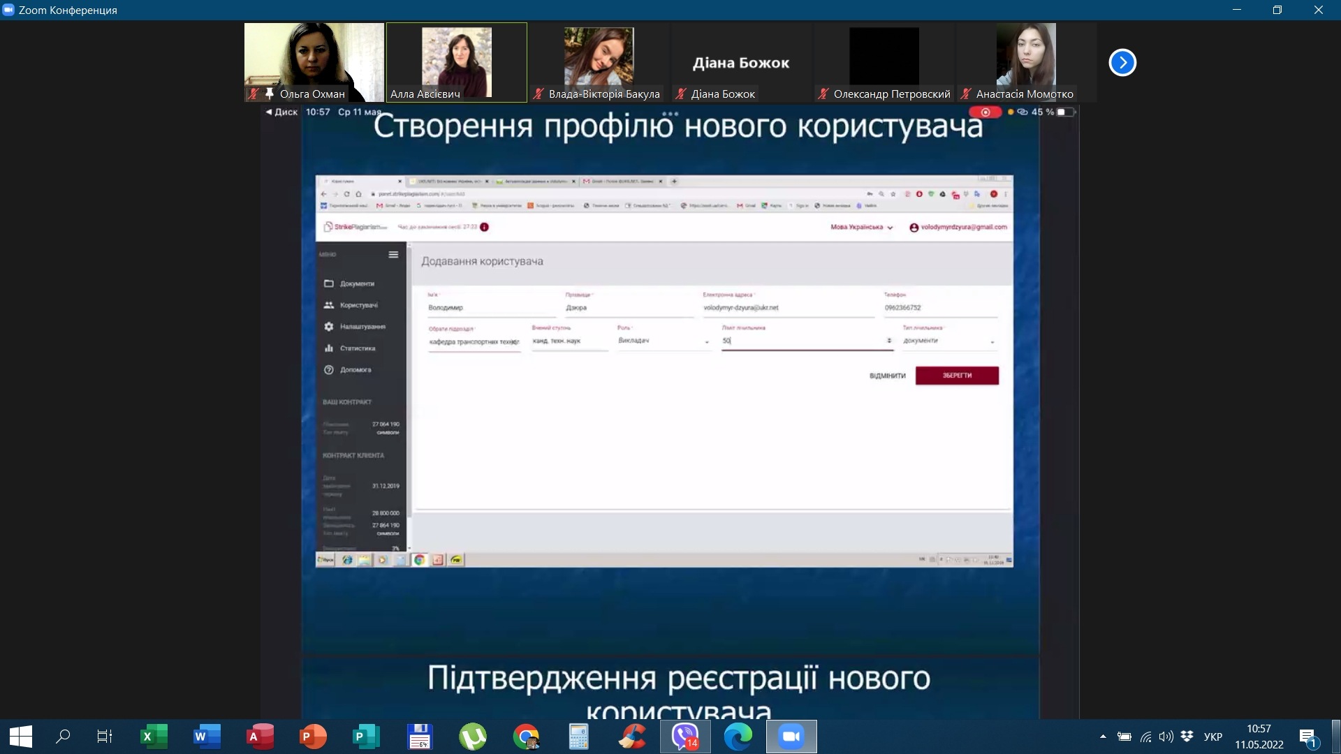 Модераторами заходу виступили Жанна Кілівнік, голова Наукового товариства студентів та молодих вчених Хмельницького інституту МАУП; Ольга Охман, кандидат юридичних наук, доцент кафедри права та правоохоронної діяльності Хмельницького інституту МАУП; Алла Авсієвич, PhD, доцент кафедри права та правоохоронної діяльності Хмельницького інституту МАУП; адміністратор системи.