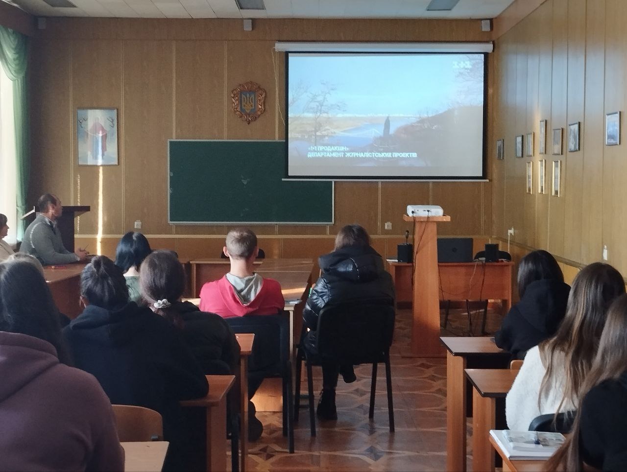 Студенти Хмельницького економіко-правового коледжу та інституту МАУП взяли участь у перегляді та обговоренні документального фільму «Битва за Київ» воєнного журналіста телеканалу «1+1» Андрія Цаплієнка.