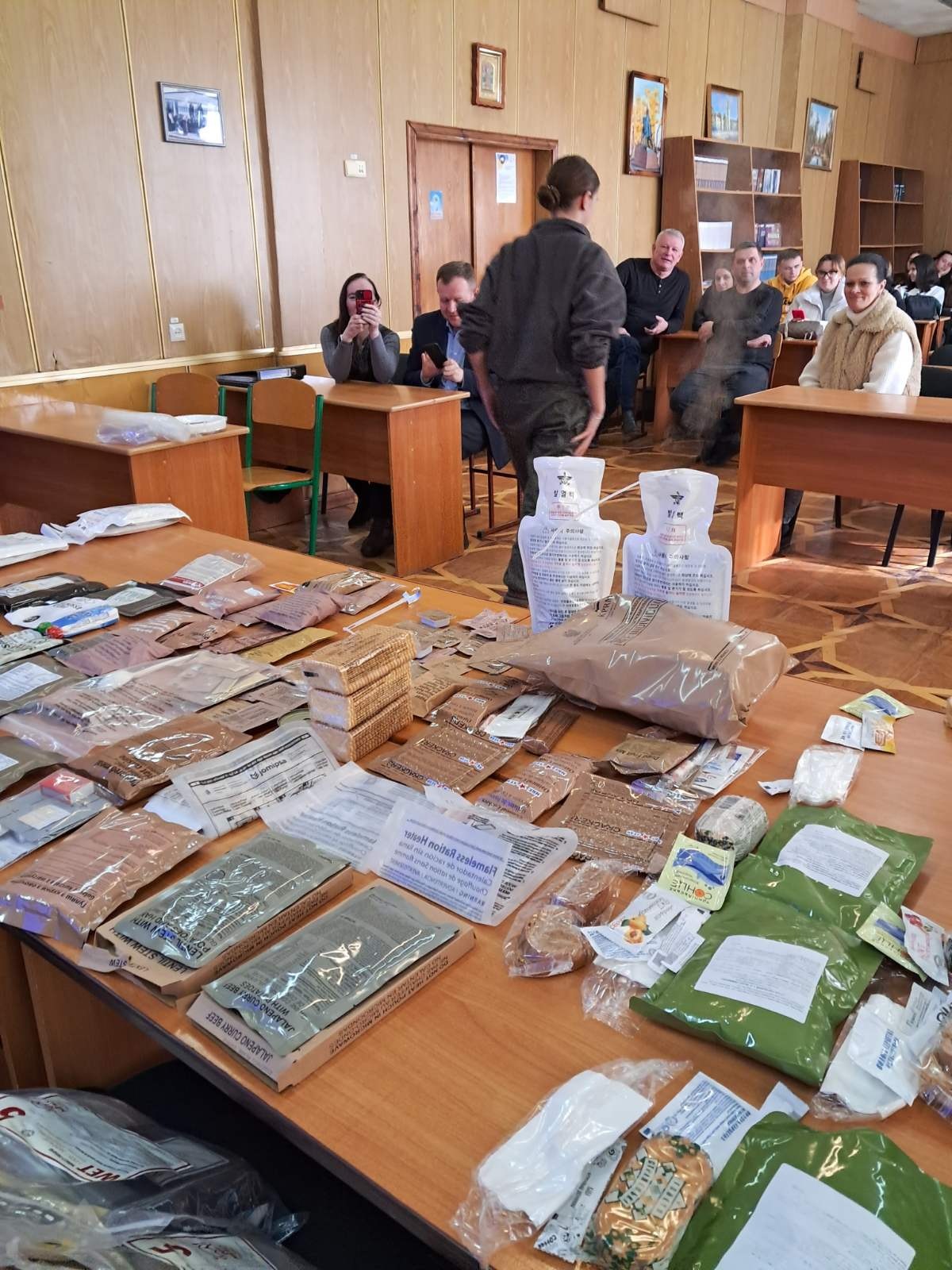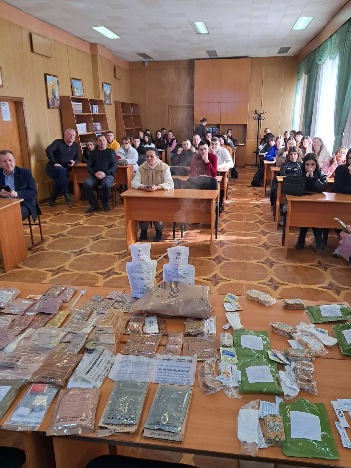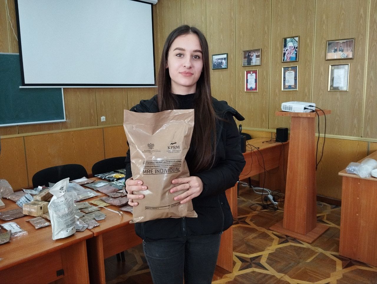 «Дякуємо за Вашу відвагу та мужність», з такими словами звернулись студенти до військових. А ще нашим студентам випала нагода скуштувати військові сухпайки різних країн, які презентували військові.