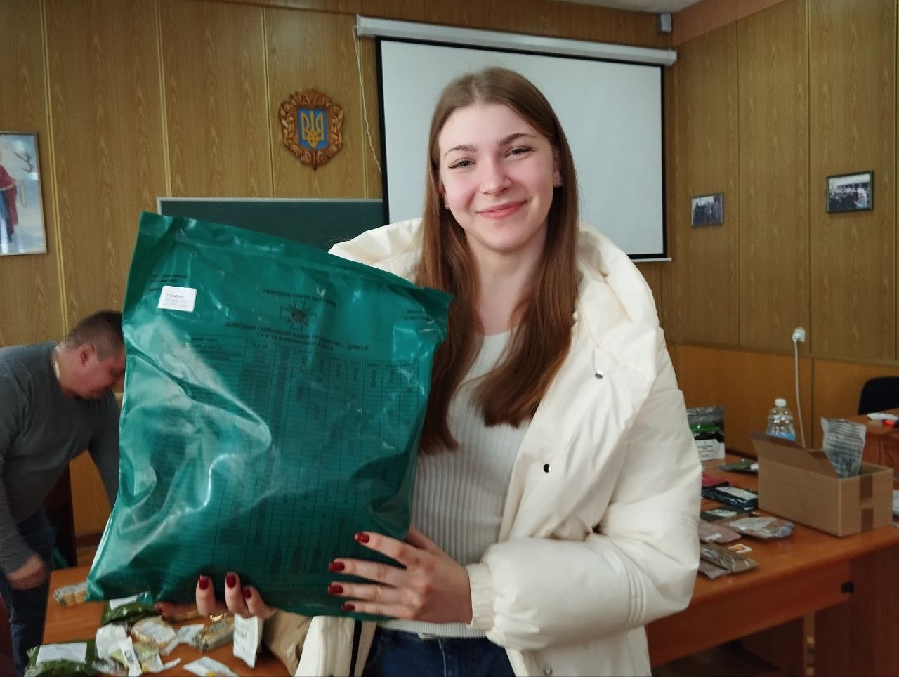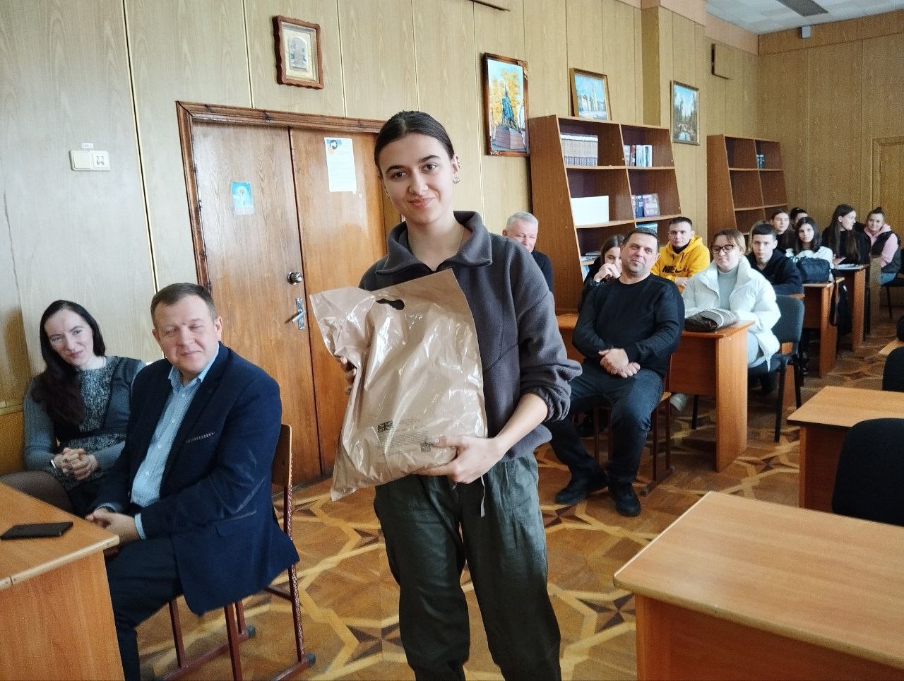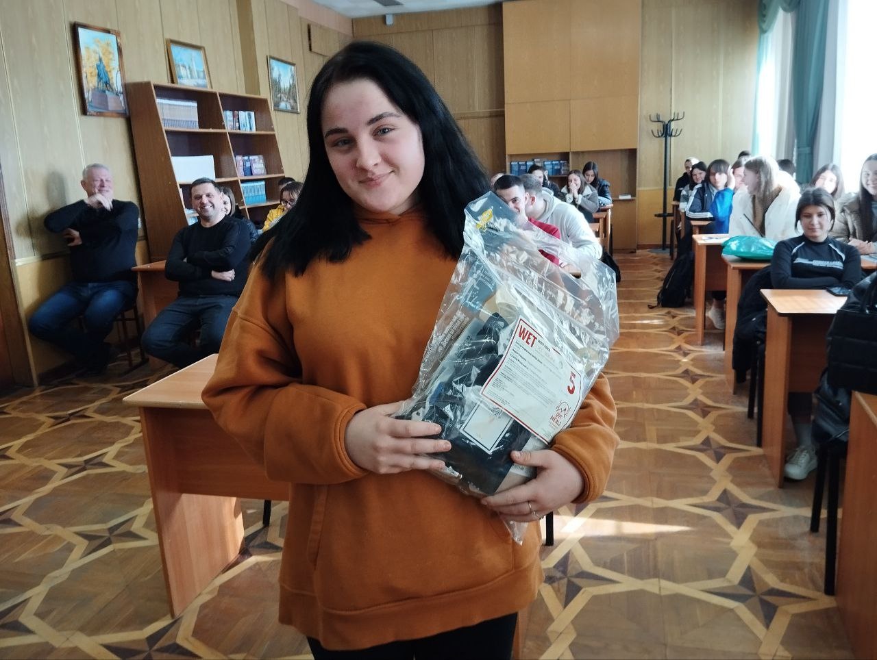«Дякуємо за Вашу відвагу та мужність», з такими словами звернулись студенти до військових. А ще нашим студентам випала нагода скуштувати військові сухпайки різних країн, які презентували військові.