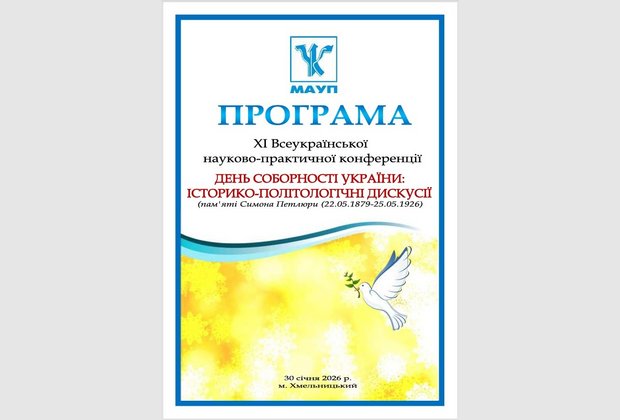 30 січня 2026 року у Хмельницькому інституті МАУП відбулася ХІ Всеукраїнська науково-практична конференція «ДЕНЬ СОБОРНОСТІ УКРАЇНИ: ІСТОРИКО-ПОЛІТОЛОГІЧНІ ДИСКУСІЇ» (пам’яті Симона Петлюри (22.05.1879 – 25.05.1926).