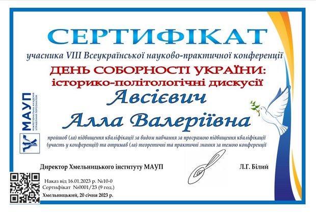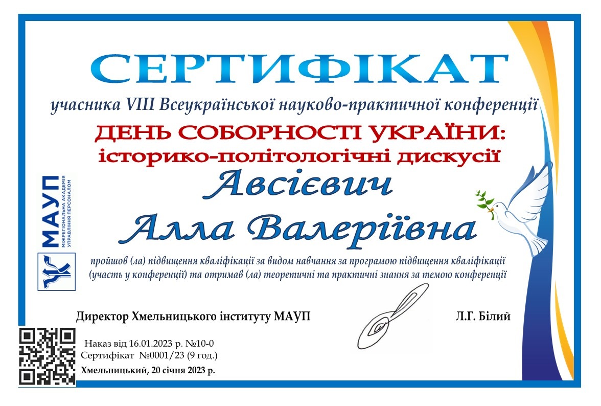 20 січня 2023 року у Хмельницькому інституті МАУП відбулася VІІІ Всеукраїнська науково-практична конференція «ДЕНЬ СОБОРНОСТІ УКРАЇНИ:ІСТОРИКО-ПОЛІТОЛОГІЧНІ ДИСКУСІЇ», яка зібрала широке коло учасників з усієї України:
